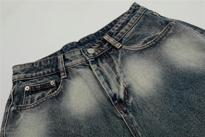 플러스 사이즈 미국 레트로 라이트닝 균열 데님 자른 바지 남녀 디자인 센스 틈새 느슨한 와이드 레그 트렌디 미드 길이 바지스토어 가기