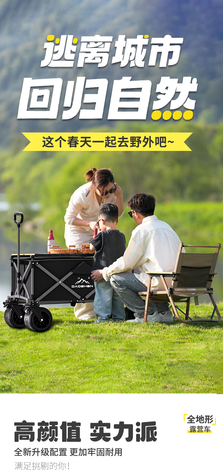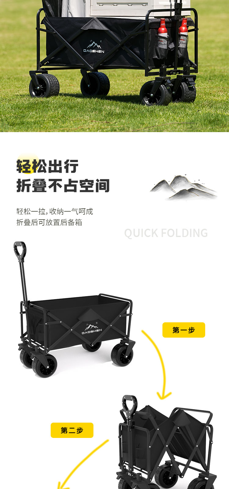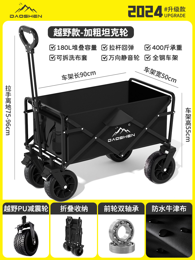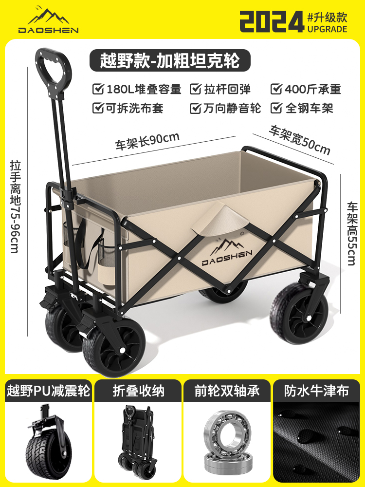 야외 캠핑 트롤리 캠핑카 캠핑 접이식 대용량 트롤리 피크닉 경량 여행 트레일러스토어 가기