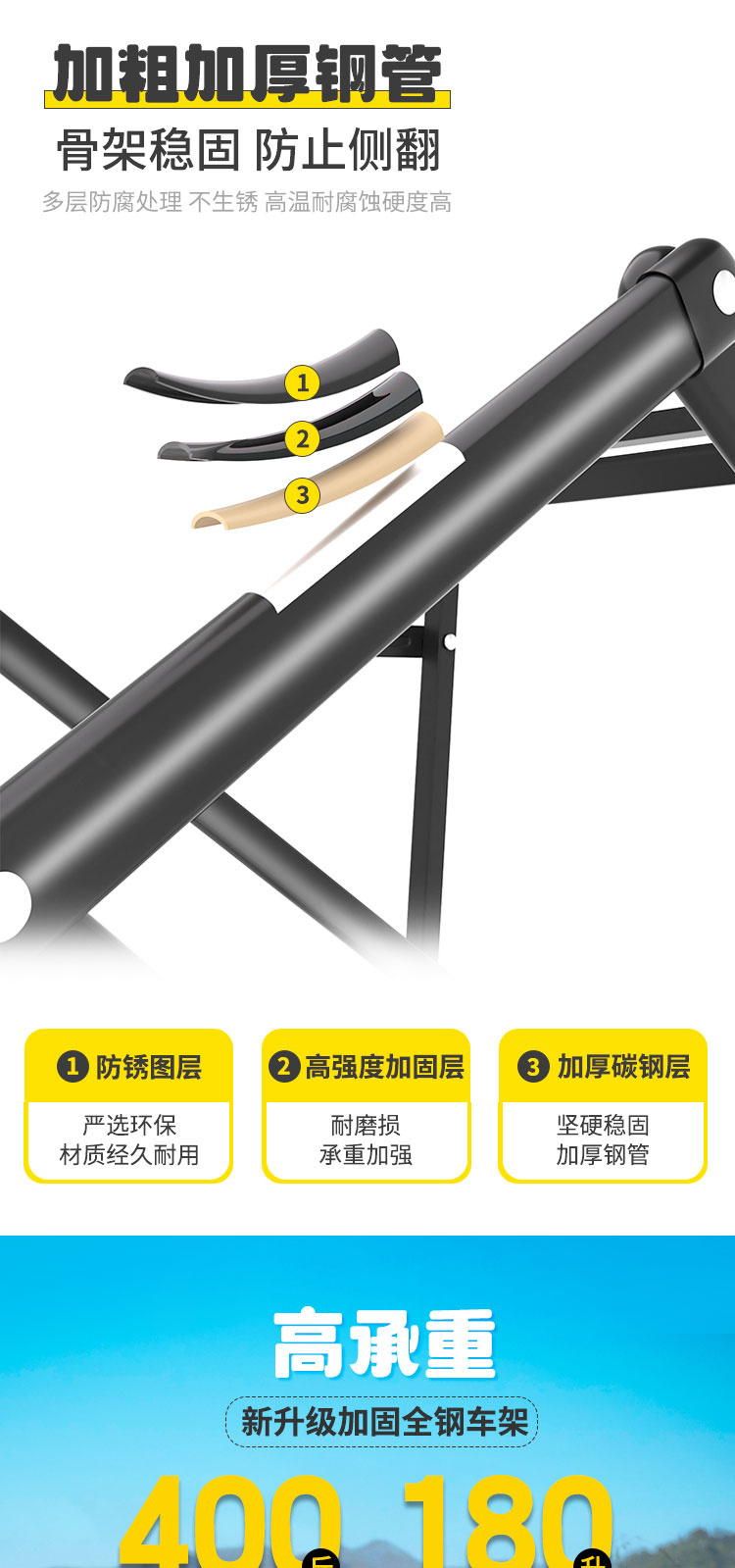 • 업그레이드된 두꺼운 황백색 강철 프레임 [고무 바퀴 5inch 개/내하중 200kg ] 두꺼운 전체 강철 프레임
