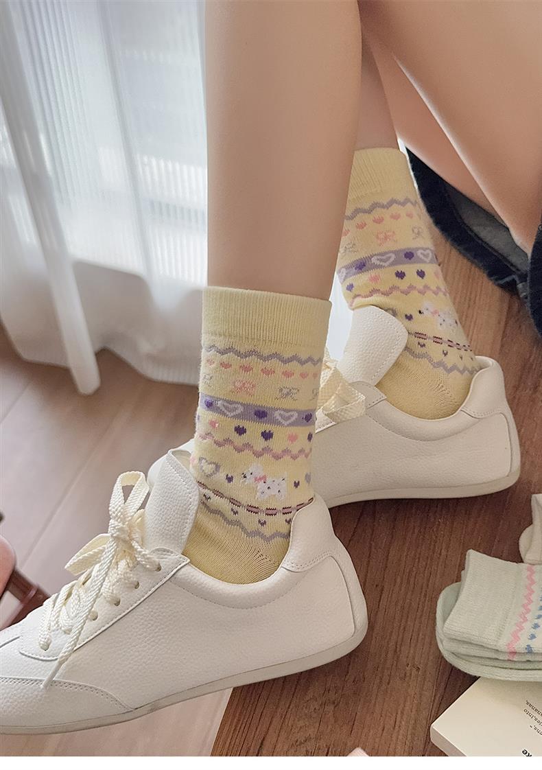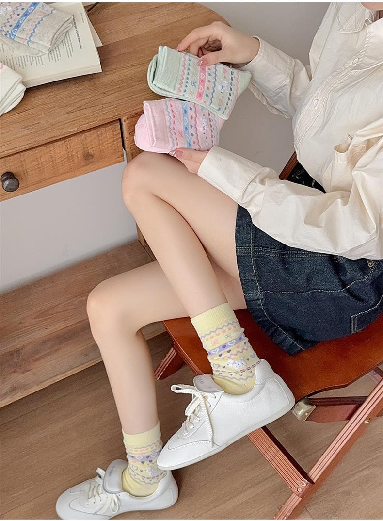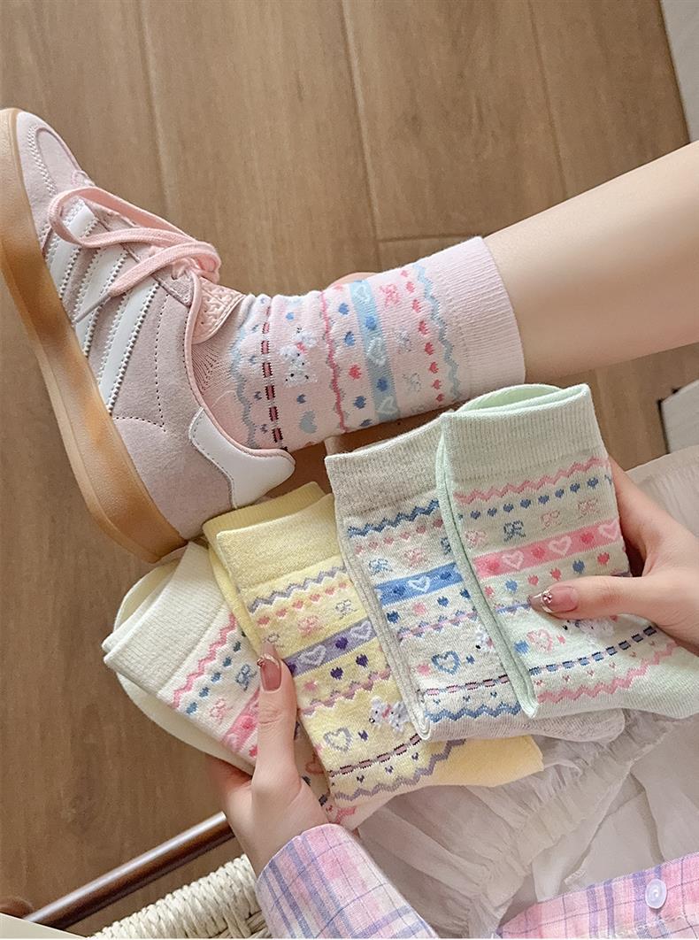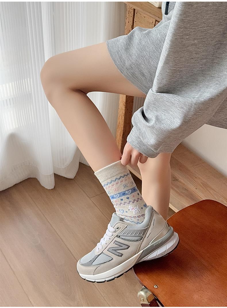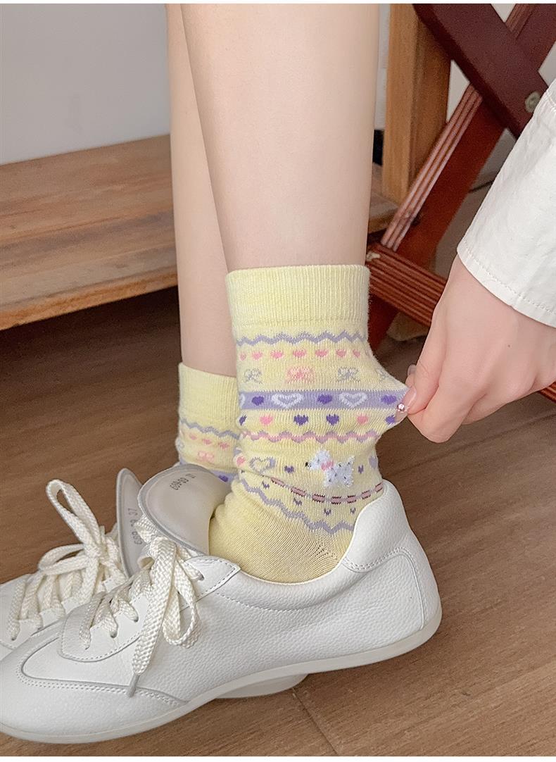 양말 여성의 중간 길이 양말 봄과 여름 페어 랜드 귀여운 활 더미 양말 폴로 도트 개 빈티지 라이트 그레이 여성용 양말