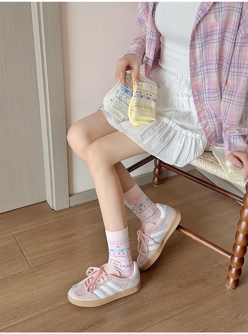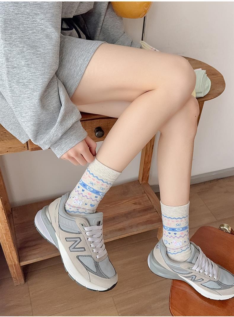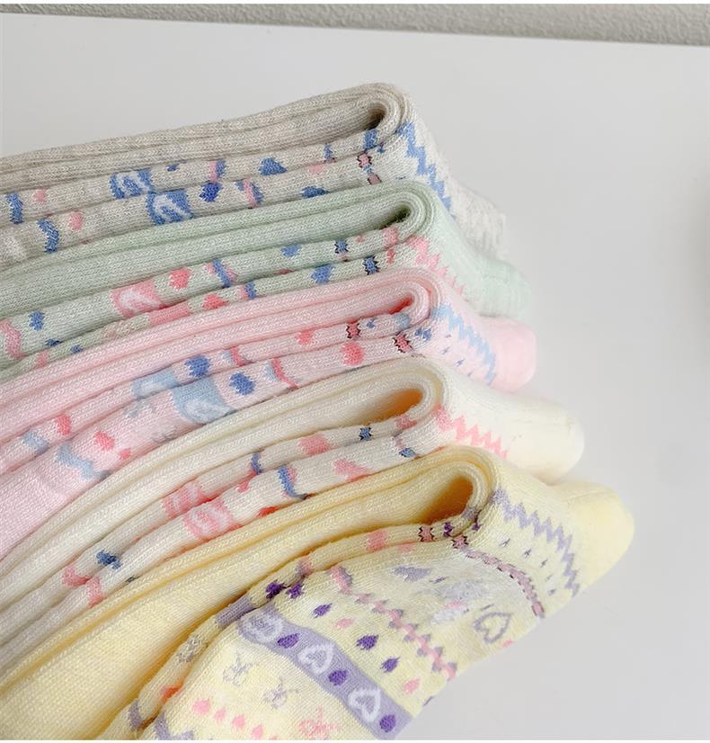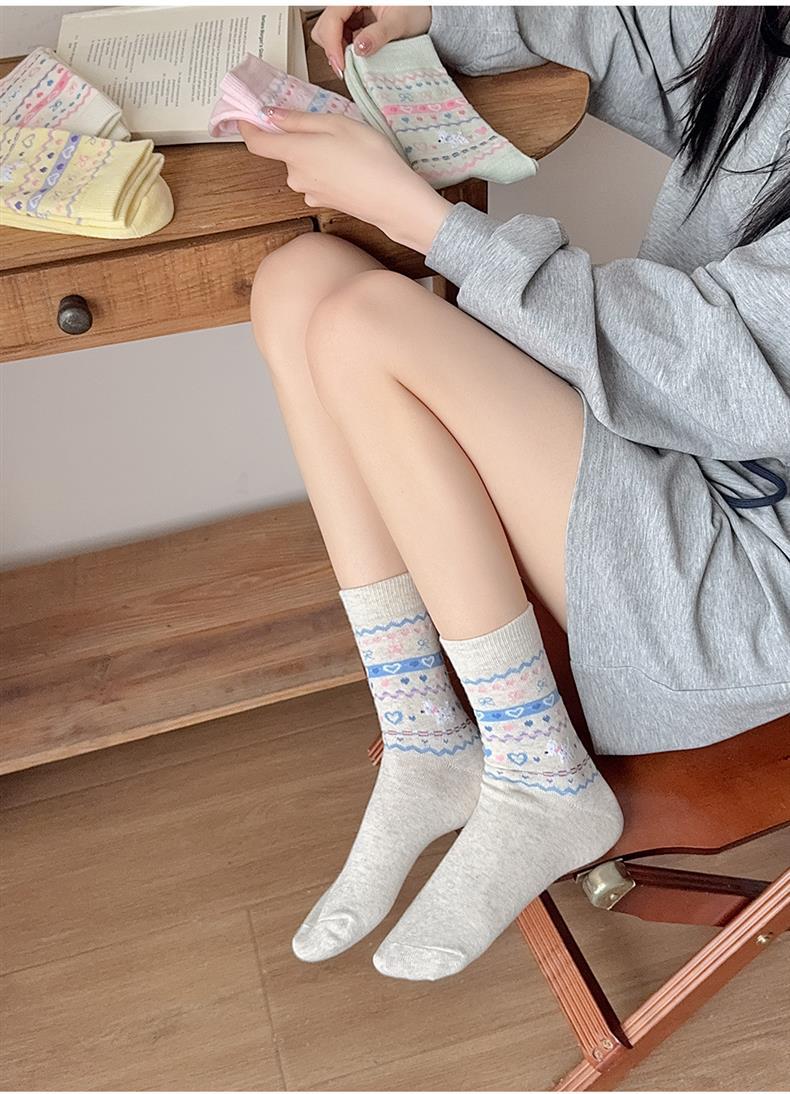 양말 여성의 중간 길이 양말 봄과 여름 페어 랜드 귀여운 활 더미 양말 폴로 도트 개 빈티지 라이트 그레이 여성용 양말스토어 가기