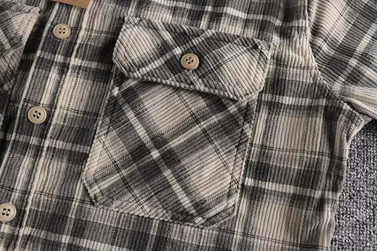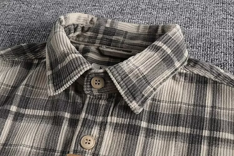 국경을 넘는 미국 카키색 복고풍 봄, 가을 남성 클래식 격자 무늬 긴팔 셔츠 워시 코듀로이 편안하고 예술적이고 트렌디합니다.스토어 가기