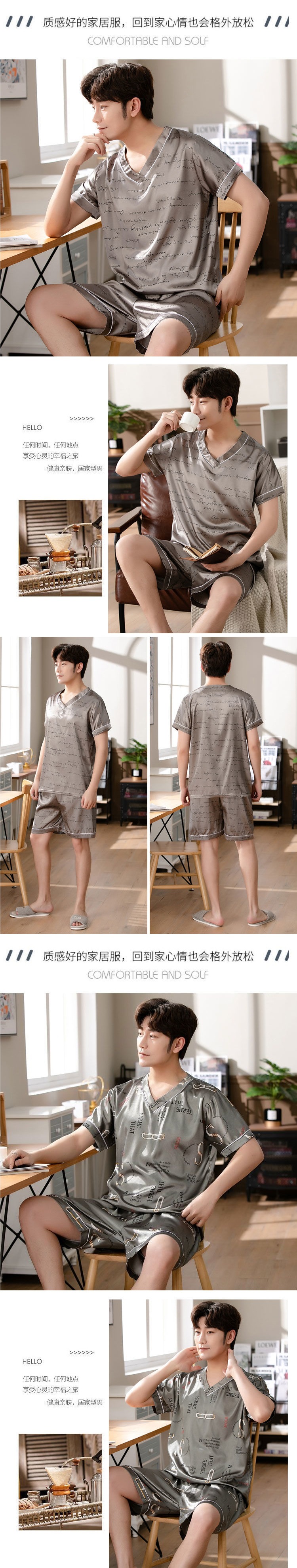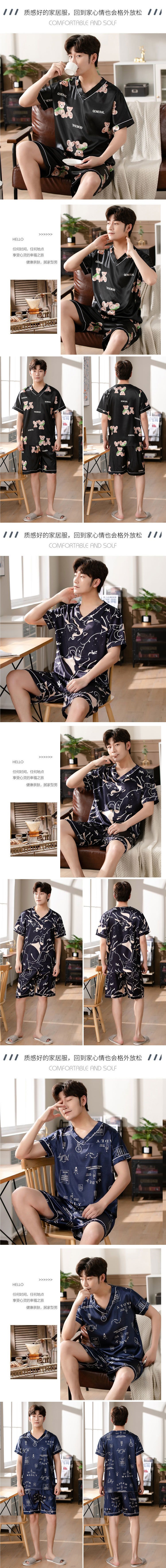 잠옷 남자 여름 실크 반소매 녹색 중년 여름 얇은 V-목 플러스 사이즈 아이스 실크 세트 홈 옷스토어 가기