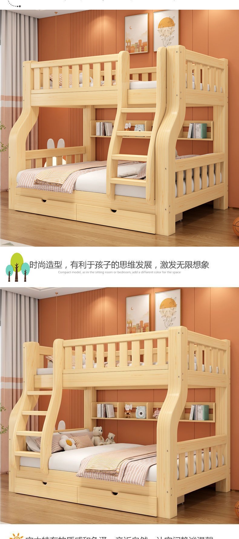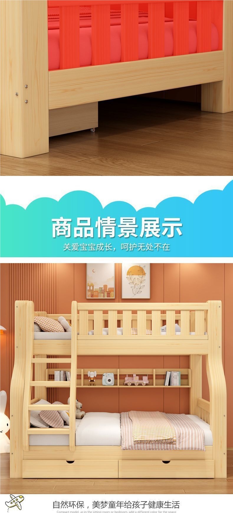 풀 솔리드 우드 벙크 침대 벙크 침대 높고 낮은 침대 성인 어린이 작은 아파트 벙크 침대 2 층 국가 표준 어린이 어머니 침대스토어 가기