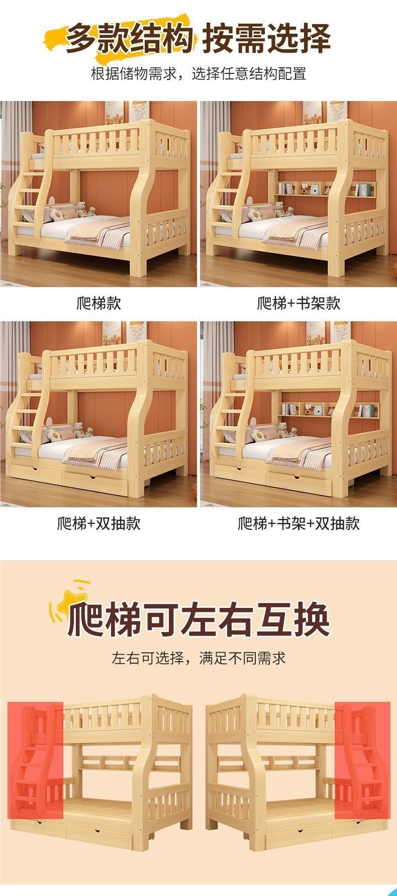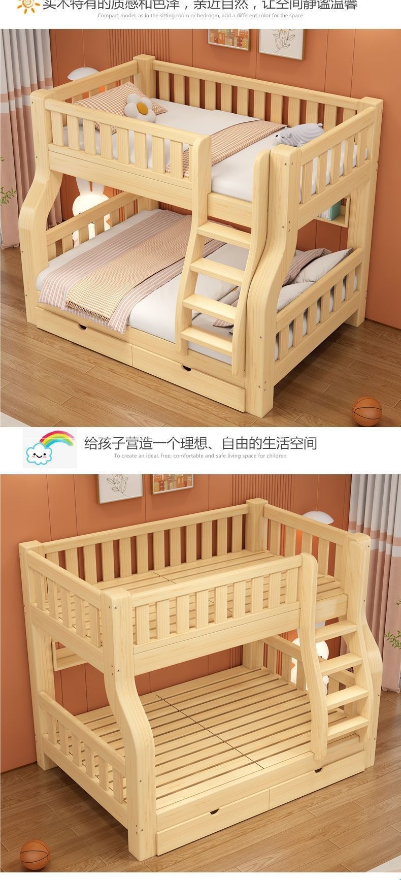 풀 솔리드 우드 벙크 침대 벙크 침대 높고 낮은 침대 성인 어린이 작은 아파트 벙크 침대 2 층 국가 표준 어린이 어머니 침대