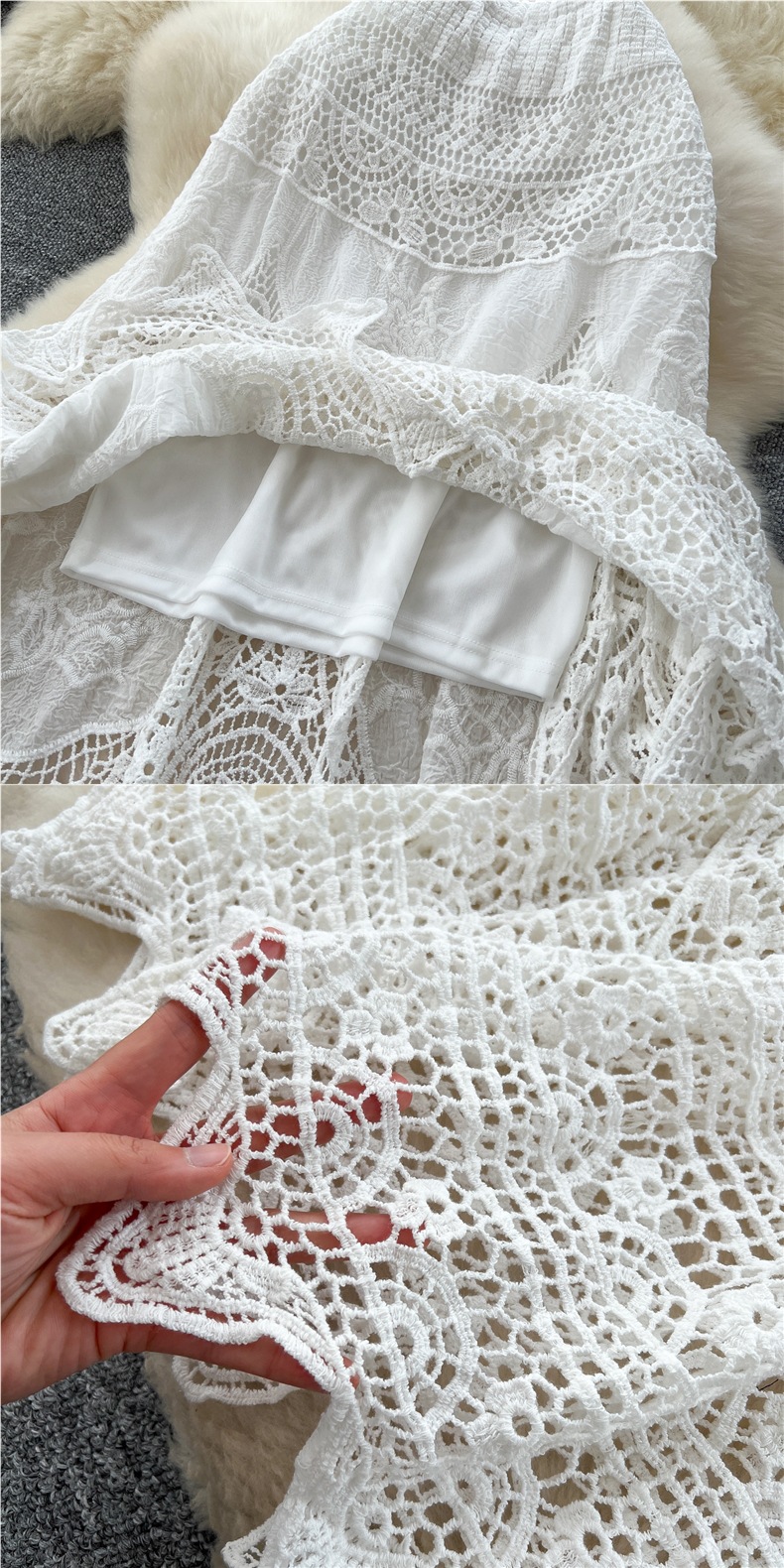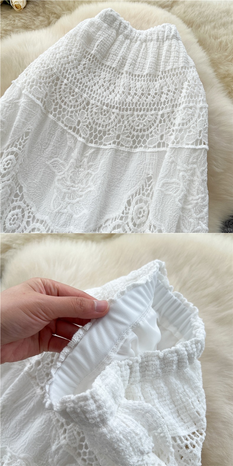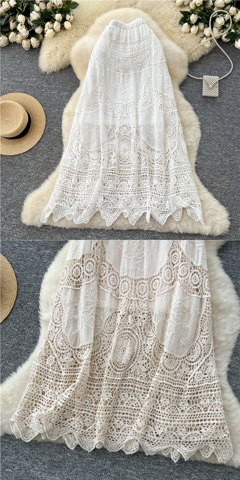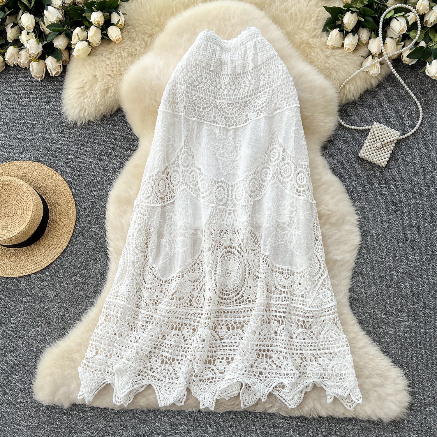 보헤미안 스타일 니트 스커트 여성 여름 중공 크로 셰 뜨개질 자수 슬림 타이트 허리 디자인 긴 스커트