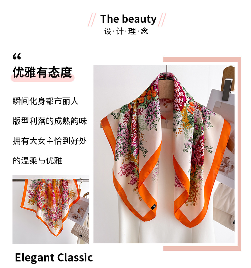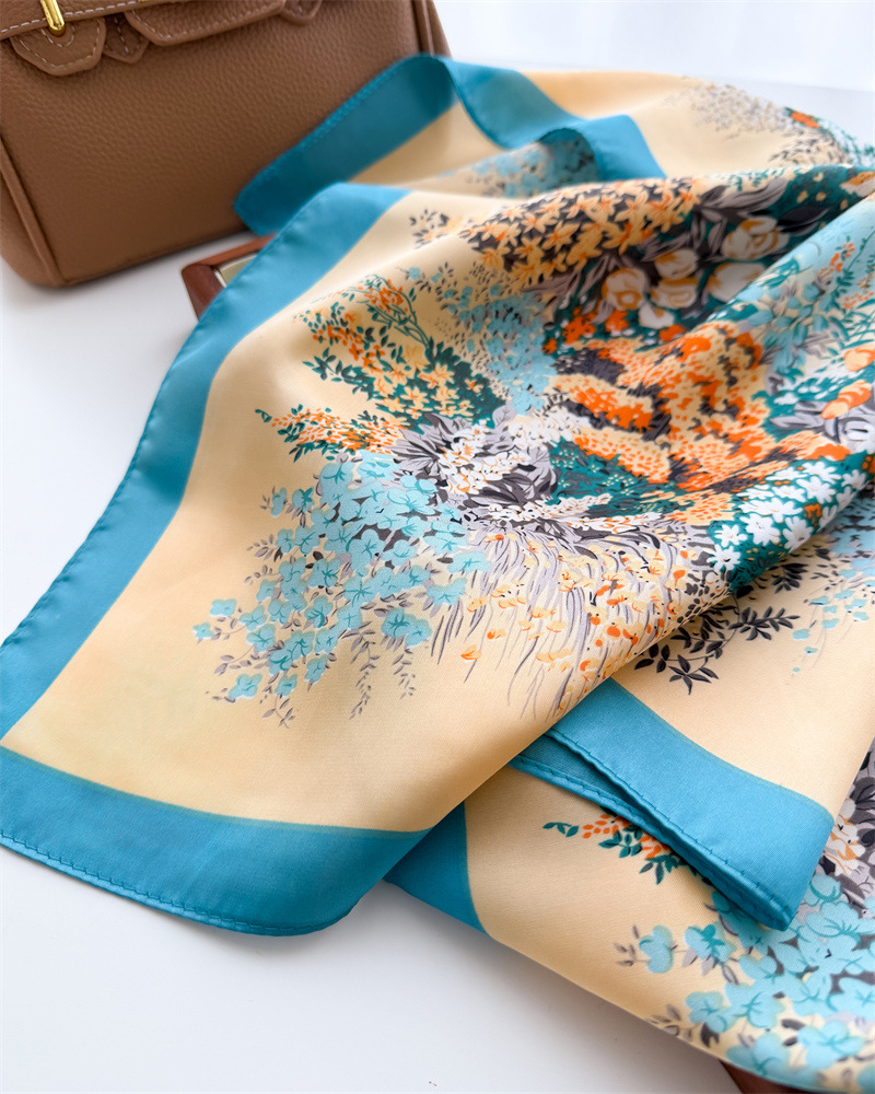 한국식 화려한 꽃 인쇄 실크 스카프 광장 스카프 고급 목도리 올매치 넥 작은 광장 스카프 여성 스카프
