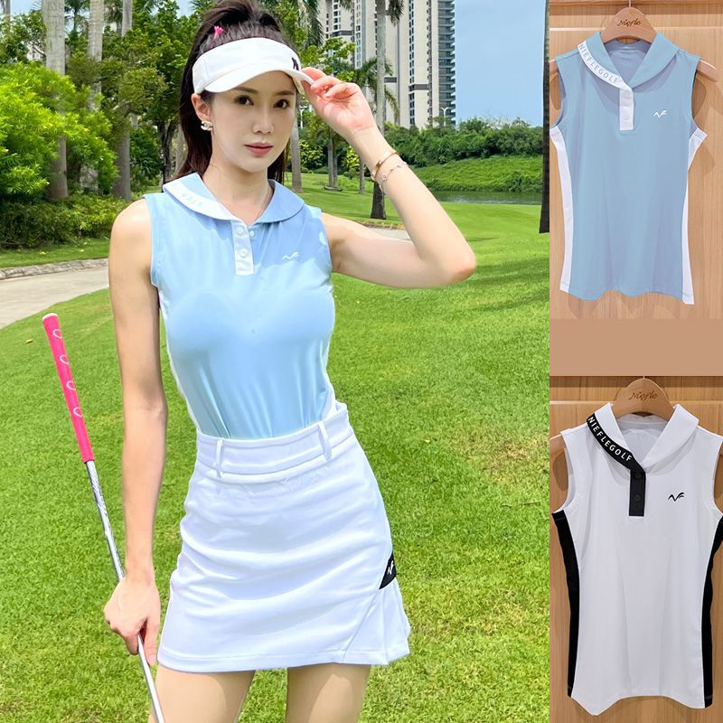 골프 의류 여성 여름 스타일 민소매 옷깃 컬러 블록 저지 땀 흡수 통기성 수축 방지 야외 스포츠 저지스토어 가기