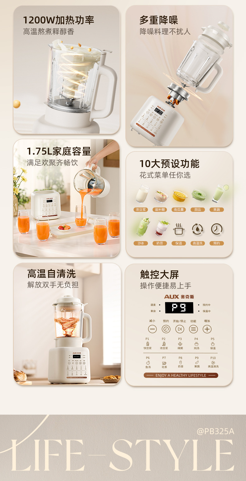 Oaks PB325A 벽 깨는 기계 가정용 대두유 기계 조리 방지 메커니즘 완전 자동 다기능 소형 과즙