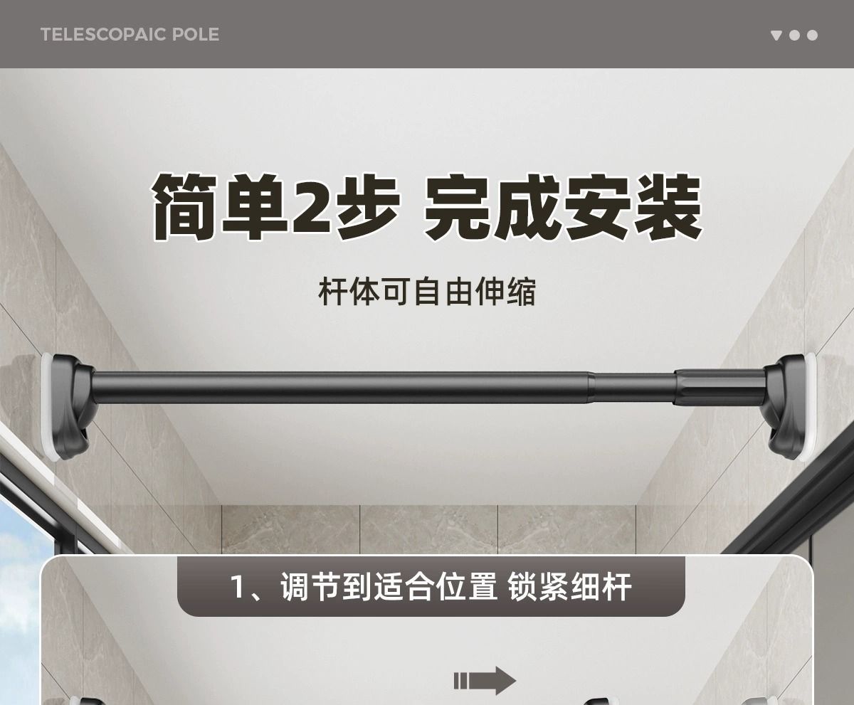 구멍이 없는 텔레스코픽 빨랫줄, 옷장 옷걸이, 욕실 샤워 커튼 레일, 발코니 침실 빨랫줄, 커튼 레일스토어 가기