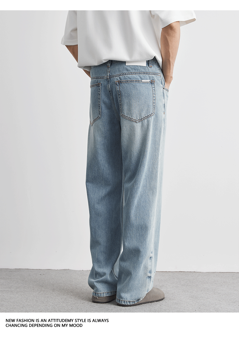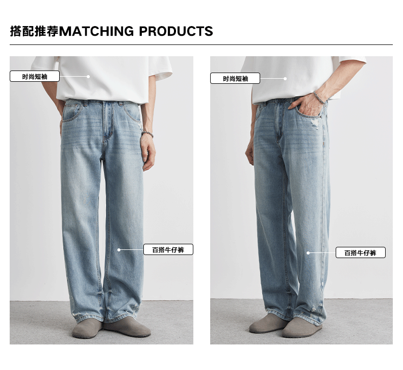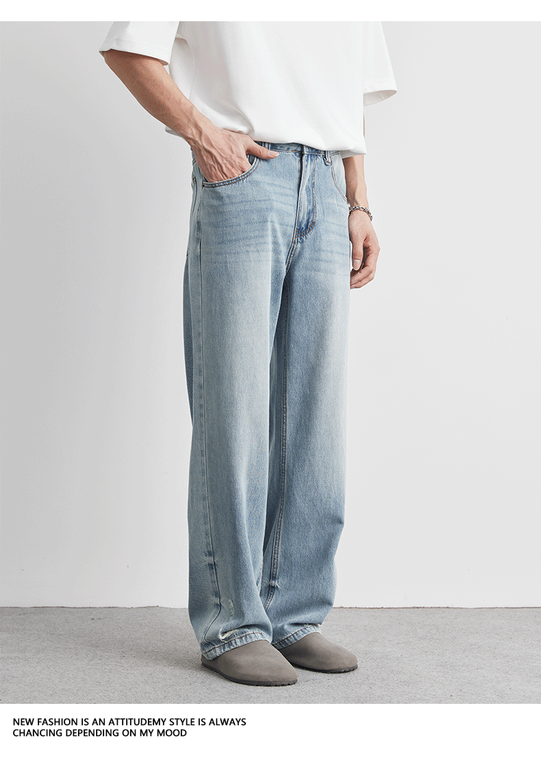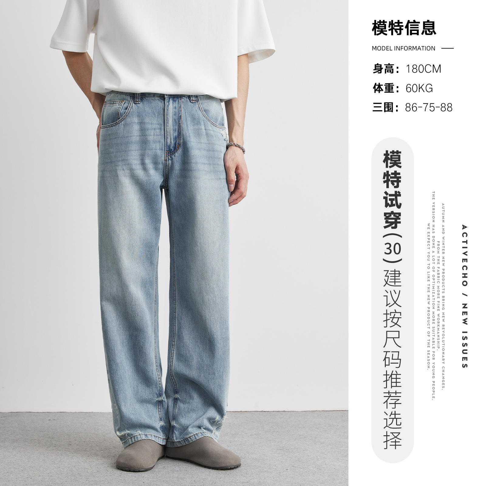 또한 클린 핏 씻은 밝은 색 청바지 남성 여름 새로운 찢어진 스트레이트 바지 얇은 남성 바지스토어 가기