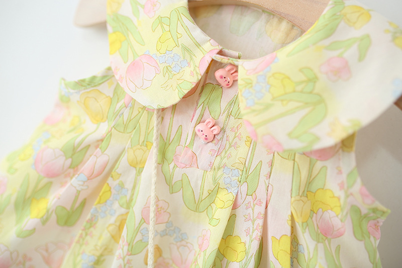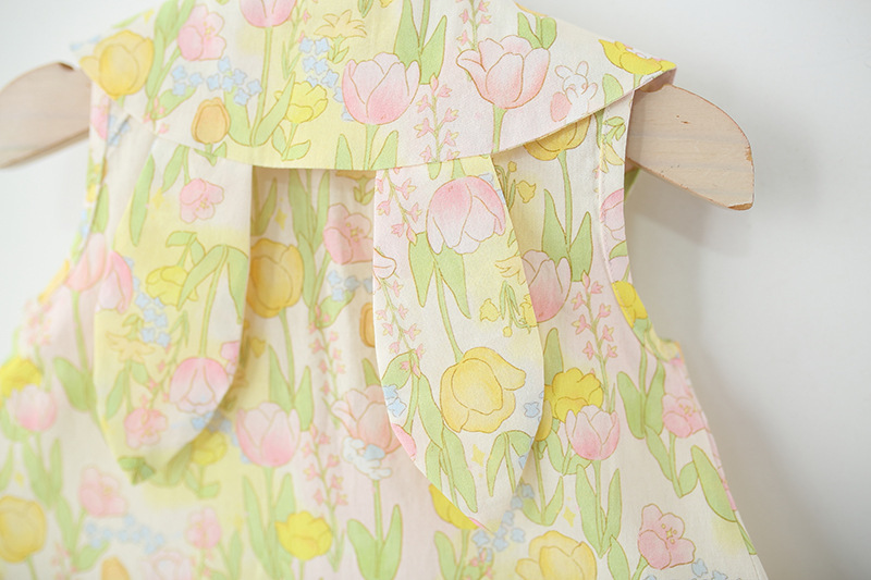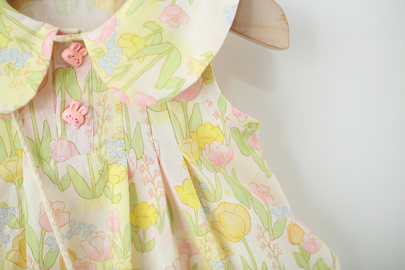 어린이 착용 여자 민소매 원피스 여름 아기 소녀 아기 인형 칼라 꽃 면직물 공주 원피스 외국 스타일스토어 가기