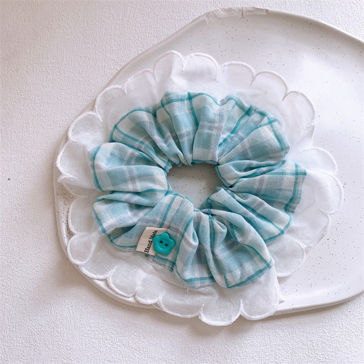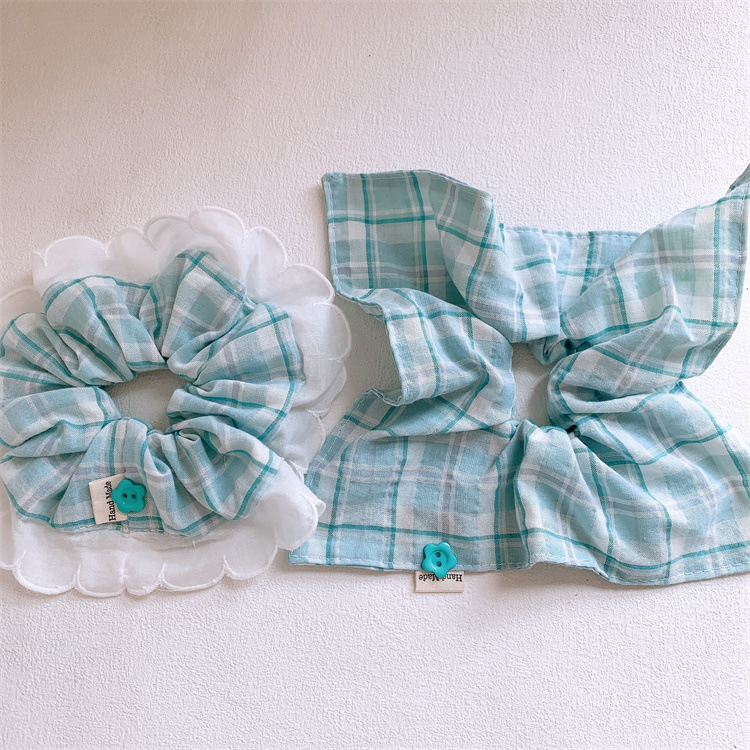 새로운 아카데미 스타일 격자 무늬 레이스 스퀘어 스카프 대형 직분 헤어 링 여성용 포니 테일 고무 텐돈 헤어 로프 볼 헤어 로프 헤드 주소스토어 가기