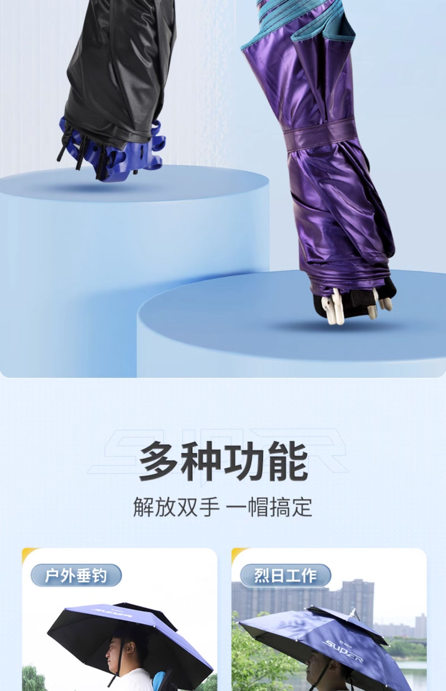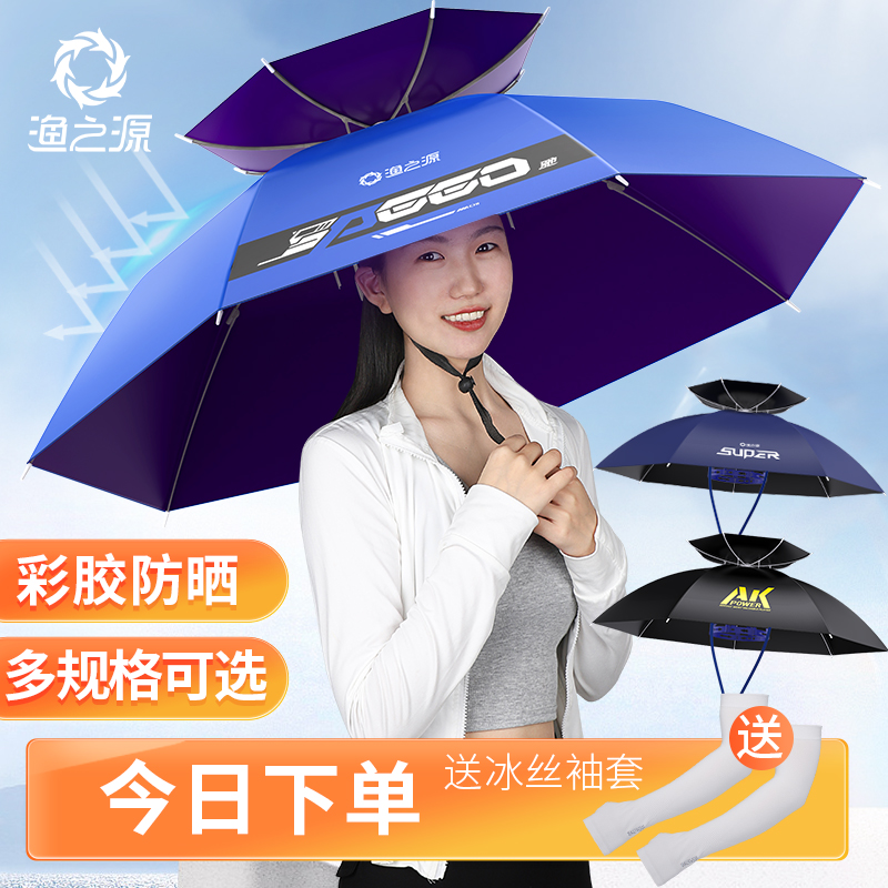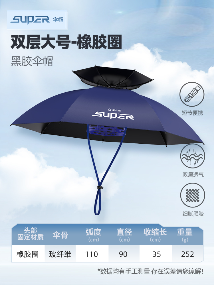 Yuzhiyuan 낚시 우산 모자 헤드 장착형 우산 모자 태양 보호 접이식 오버헤드 우산 더블 레이어 대형 양산 및 비 방지 모자 우산스토어 가기