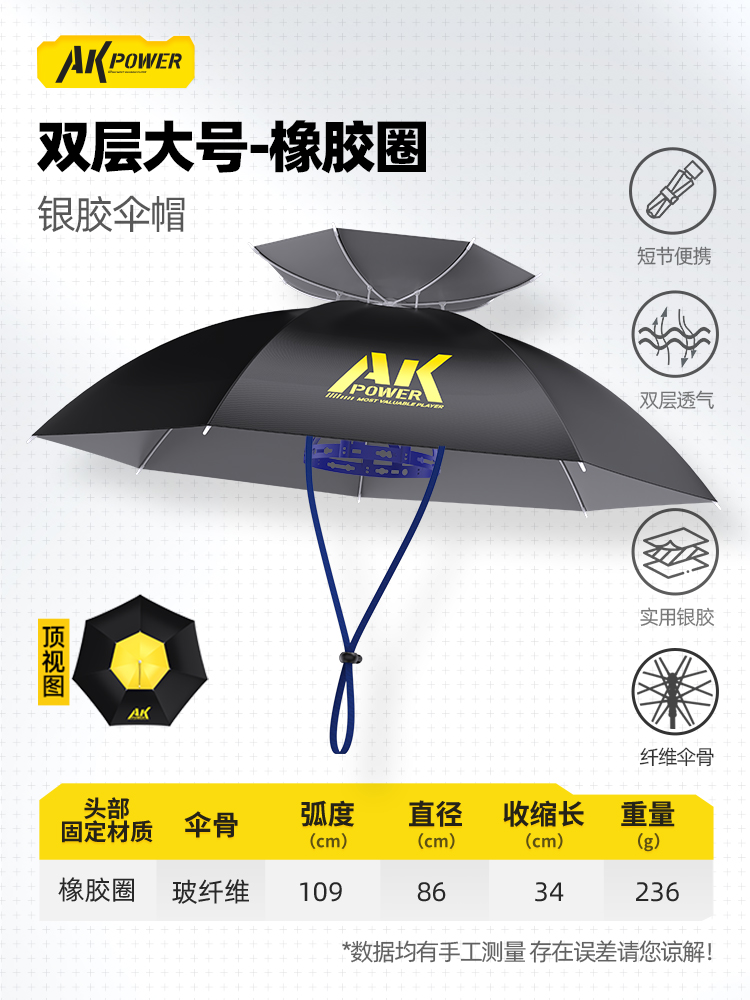 Yuzhiyuan 낚시 우산 모자 헤드 장착형 우산 모자 태양 보호 접이식 오버헤드 우산 더블 레이어 대형 양산 및 비 방지 모자 우산