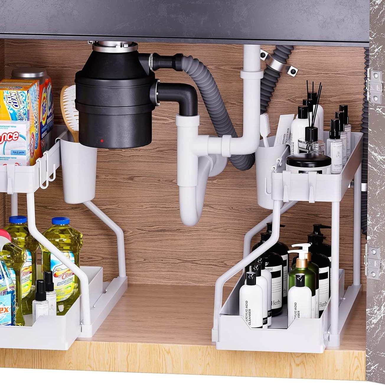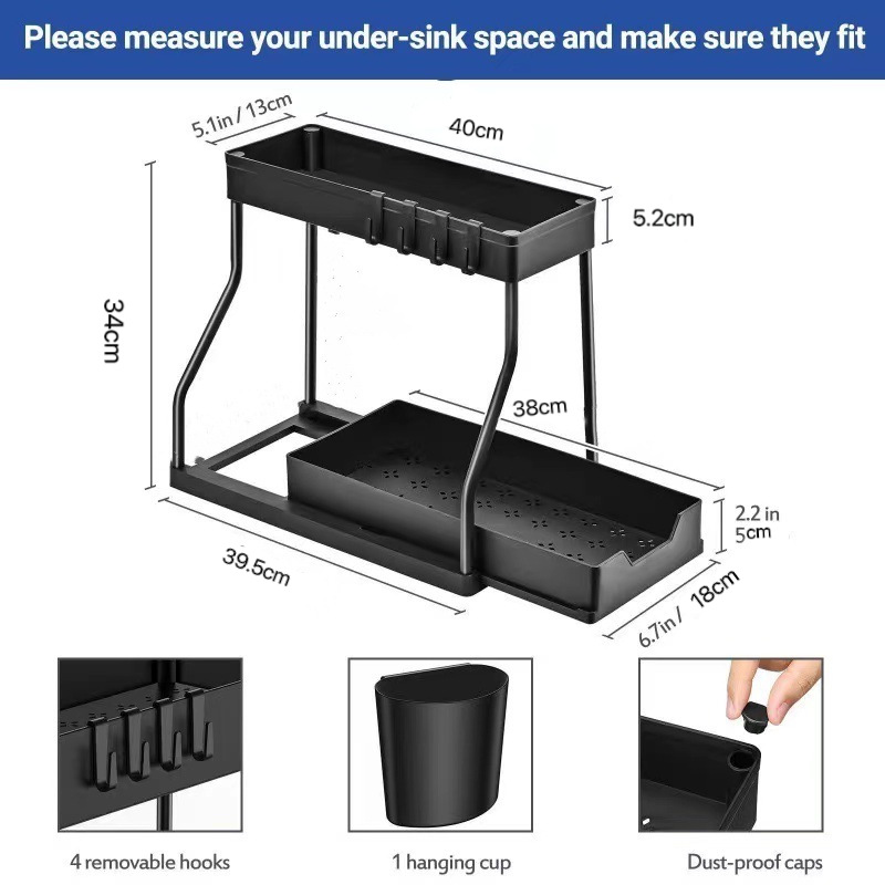 TEMU 아마존 욕실 주방 싱크 랙 2 층 R 타입 푸시-풀 캐비닛 스토리지 랙 스토리지 랙