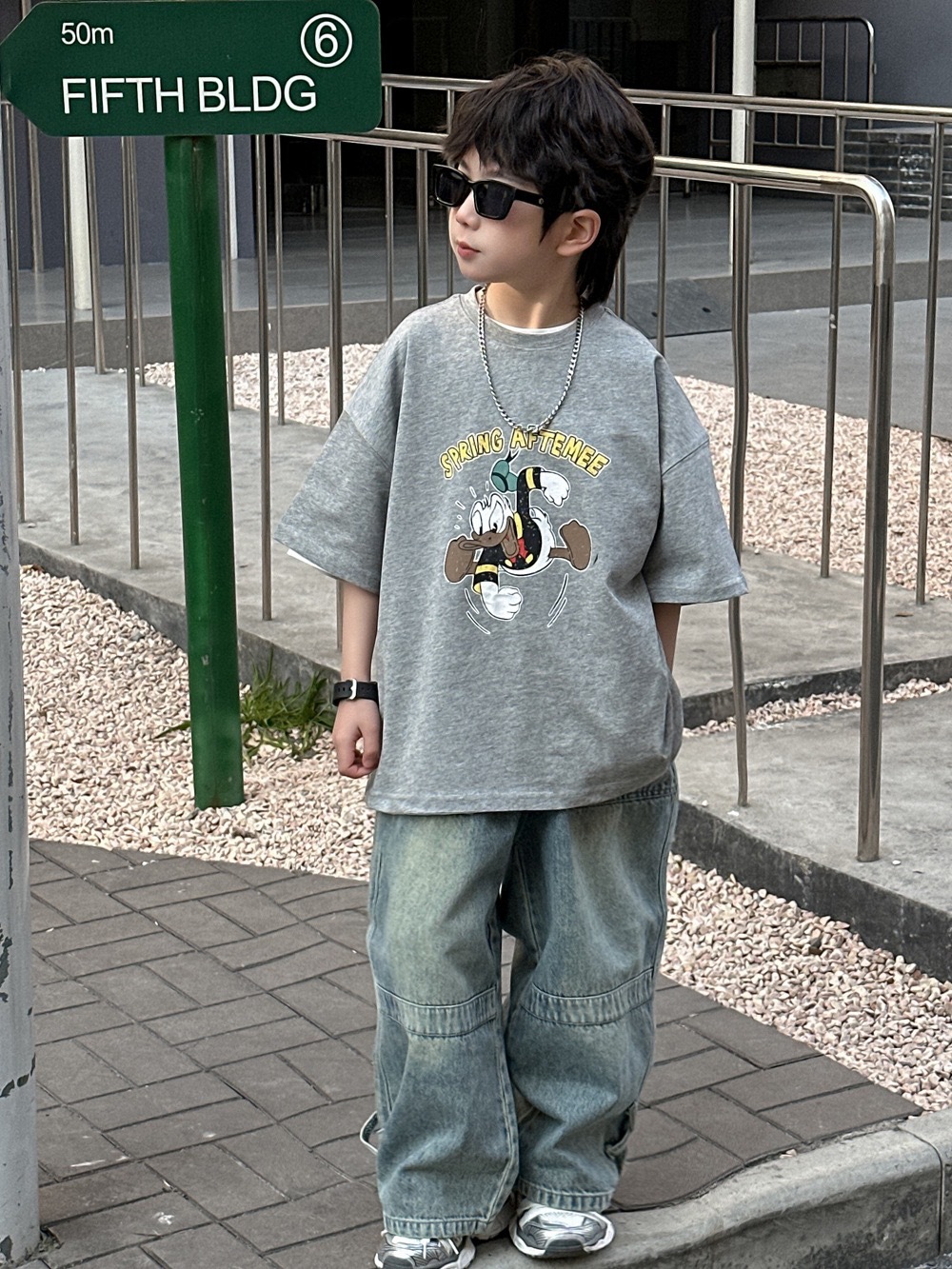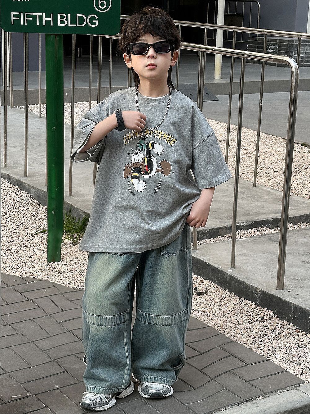 소년 한국 스타일 바지 2025 가을 새로운 어린이 느슨한 오래된 청바지 어린 소년 잘 생긴 스트레이트 바지 유행