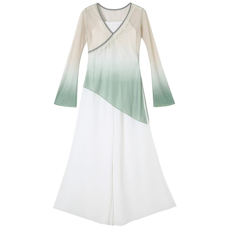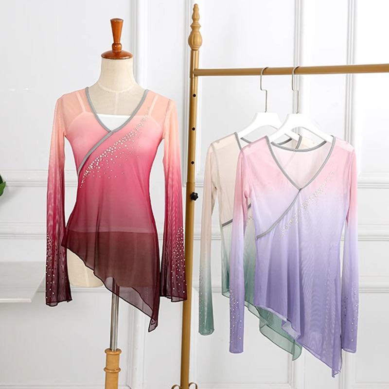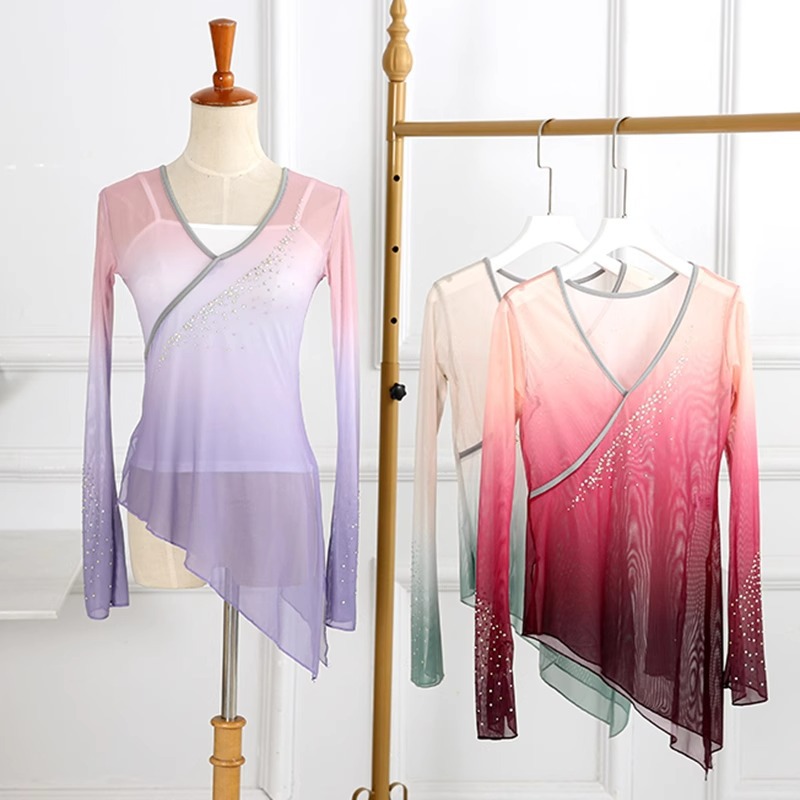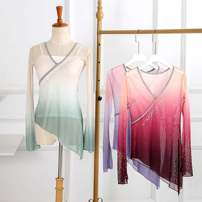 아동용 고전무용복, 중국무용연습복, 그라데이션 컬러 핫 다이아몬드 거즈 의류, 여아 민속무용 팬댄스스토어 가기