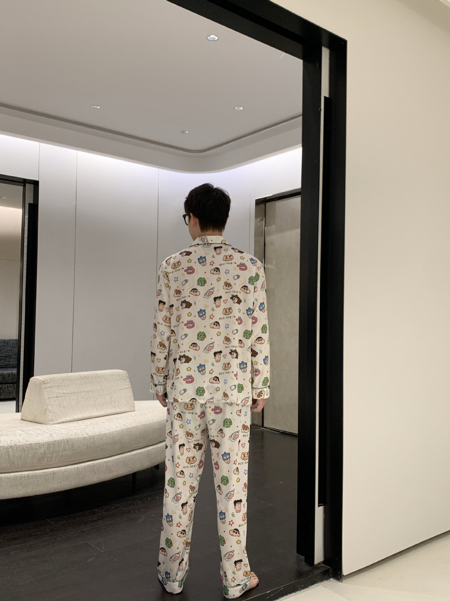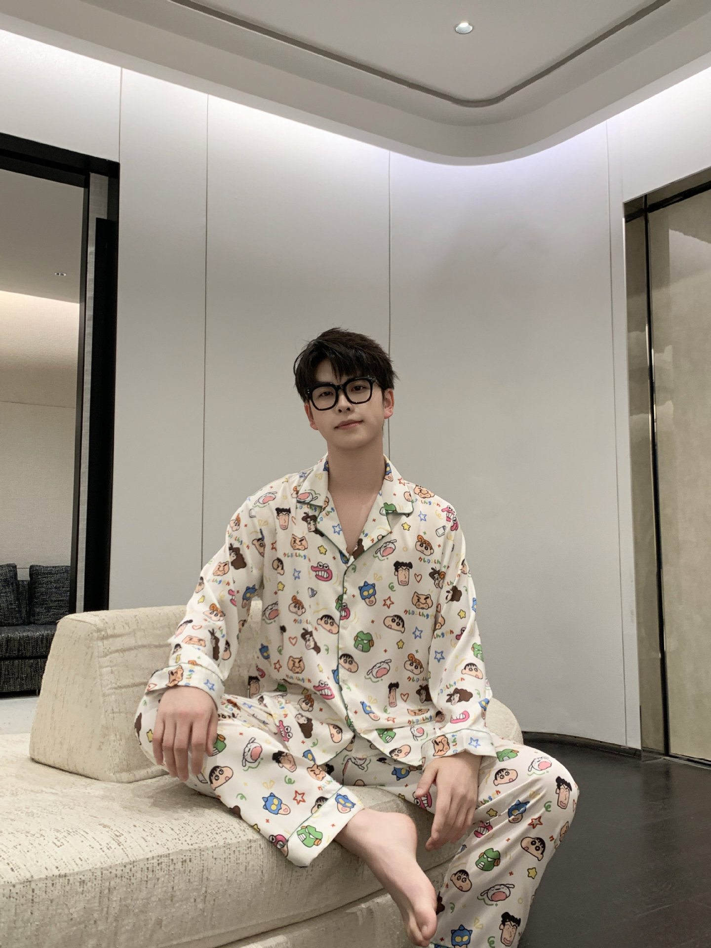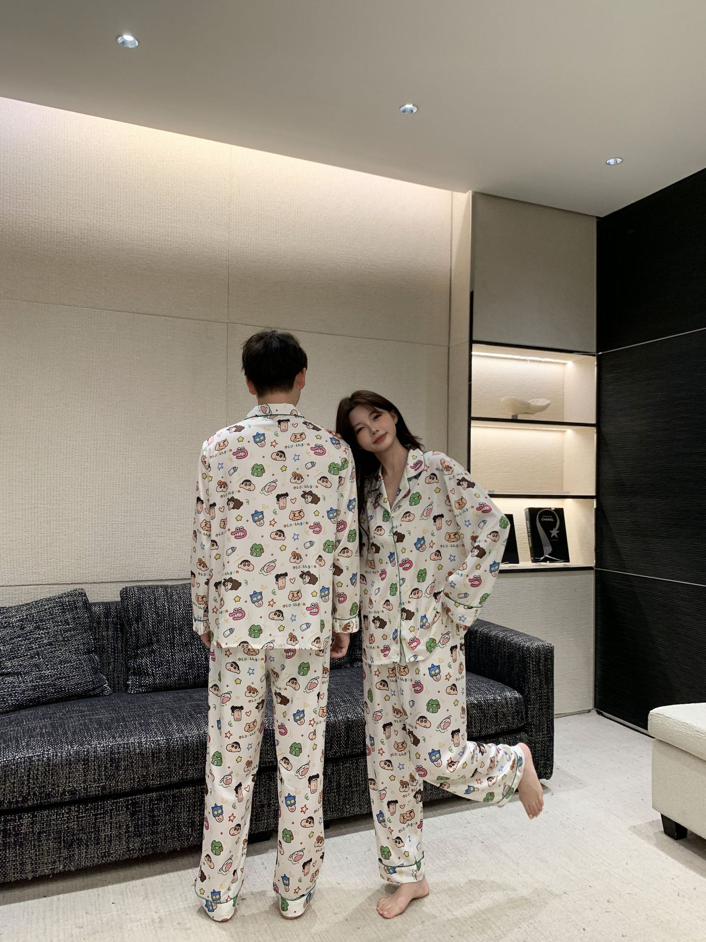 [커플] 샤오 신 커플 파자마 여성 아이스 실크 긴 소매 귀여운 만화 실크 하이 엔드 새틴 홈 옷 남성