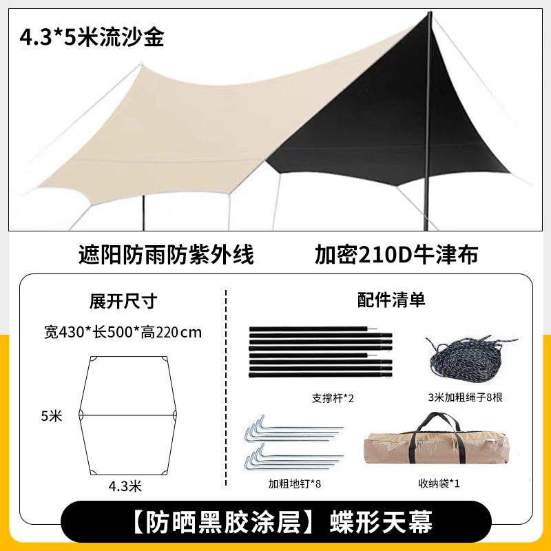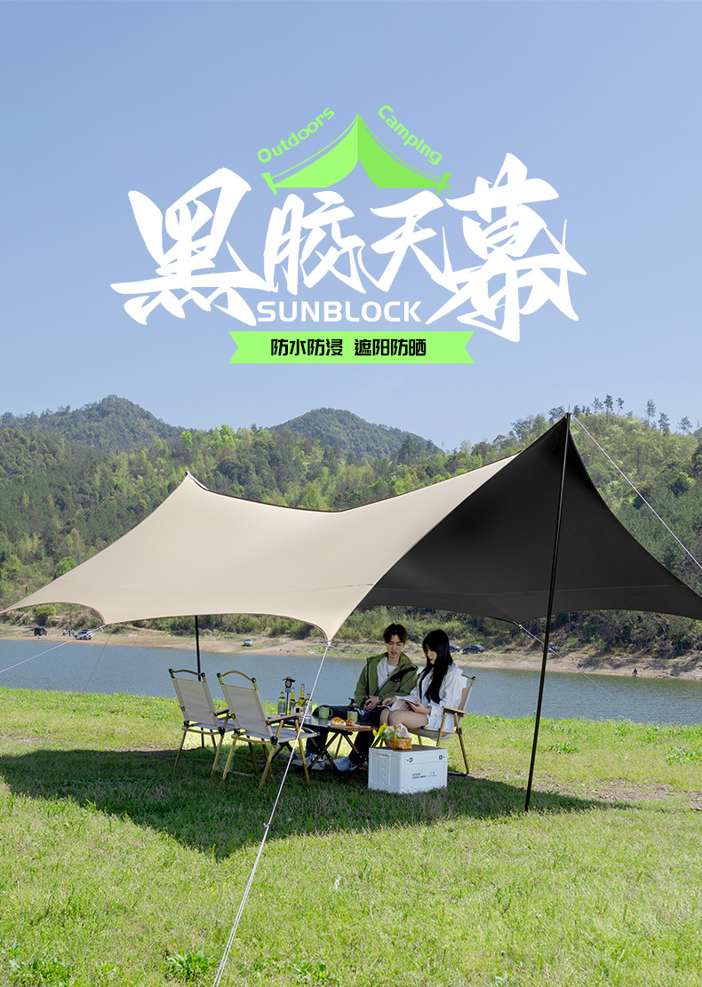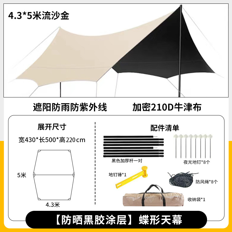 캐노피 야외 캠핑 텐트 캠핑 피크닉 햇빛 썬 스크린 블랙 접착제 휴대용 나비 캐노피스토어 가기