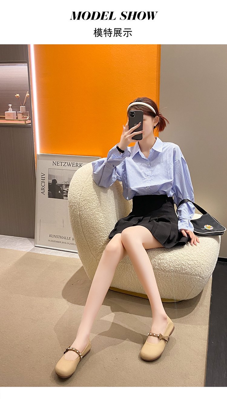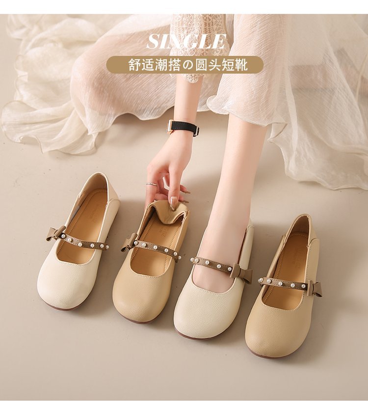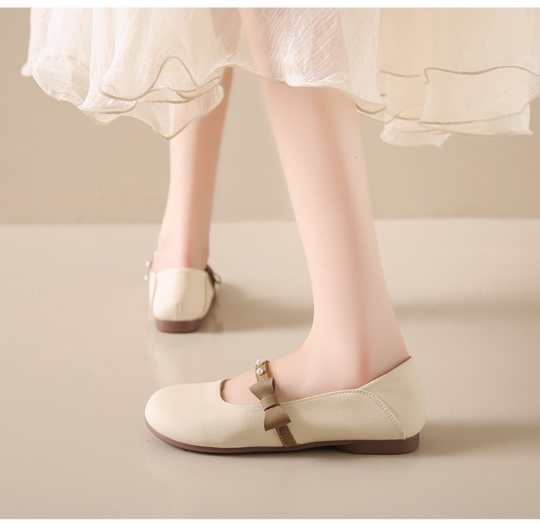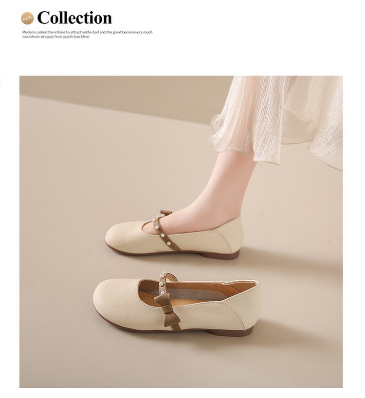 프랑스 얕은 입 플랫 가죽 신발 여성의 2025 새로운 봄 원피스 임산부 신발 부드러운 가죽 늦은 저녁 완두콩 신발스토어 가기