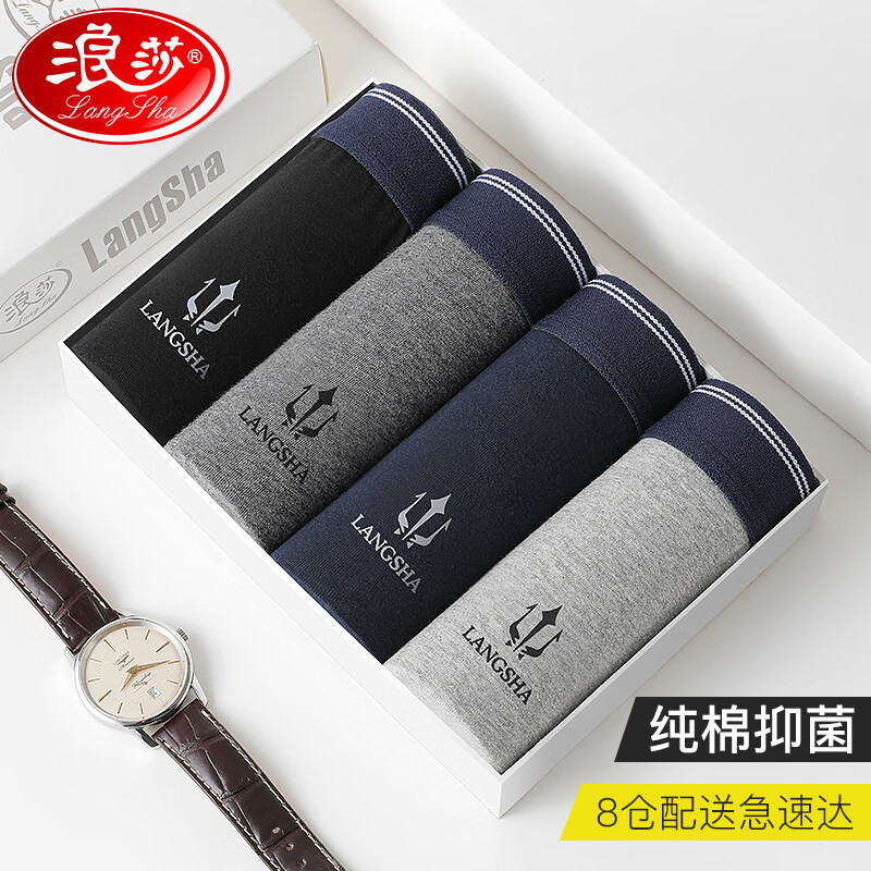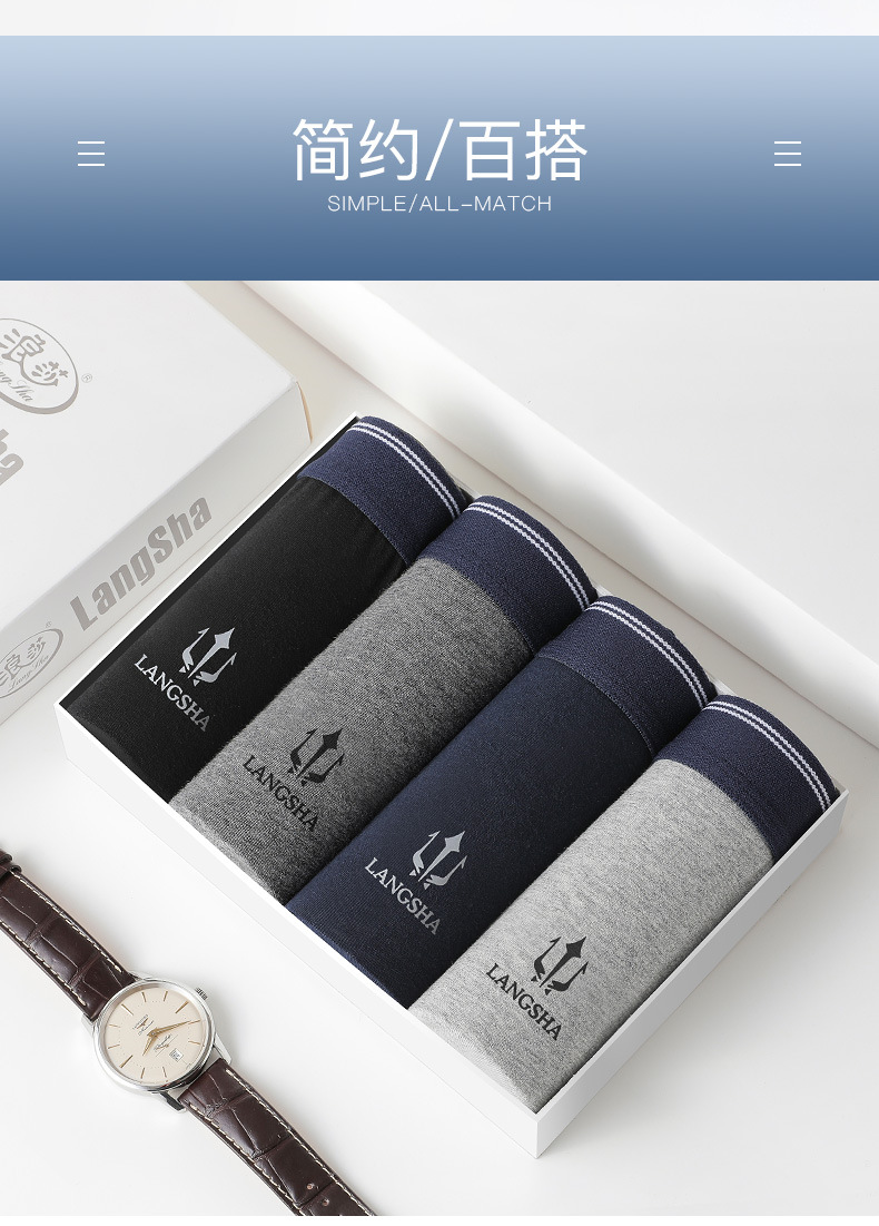 Langsha 남성 속옷 복서 반바지 항균 코튼 복서 팬티 선물 상자 남성 통기성 유행 복서 팬티스토어 가기