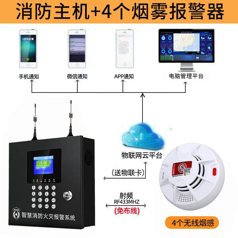 • 공장 호텔 병원 학교 상점 화재 연기 시스템 - 고급 4G 화재 호스트 + 연기 감지기 4개