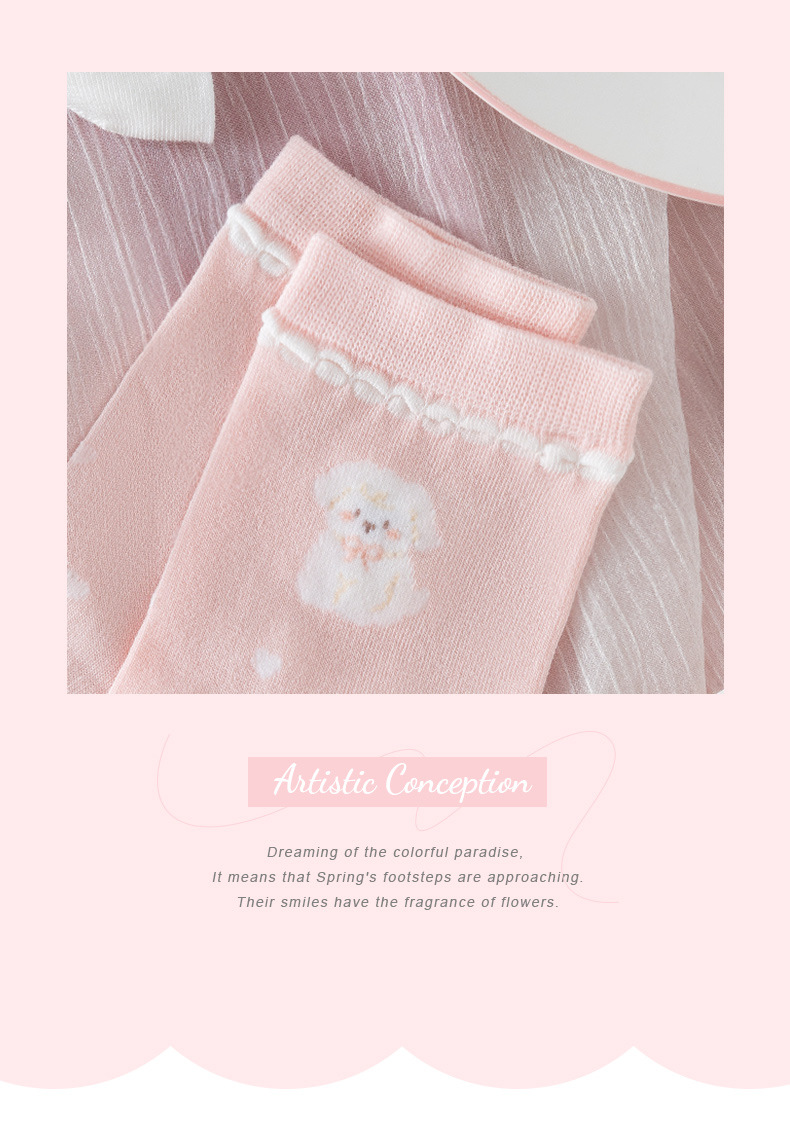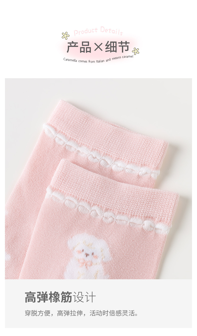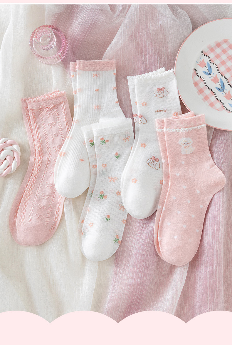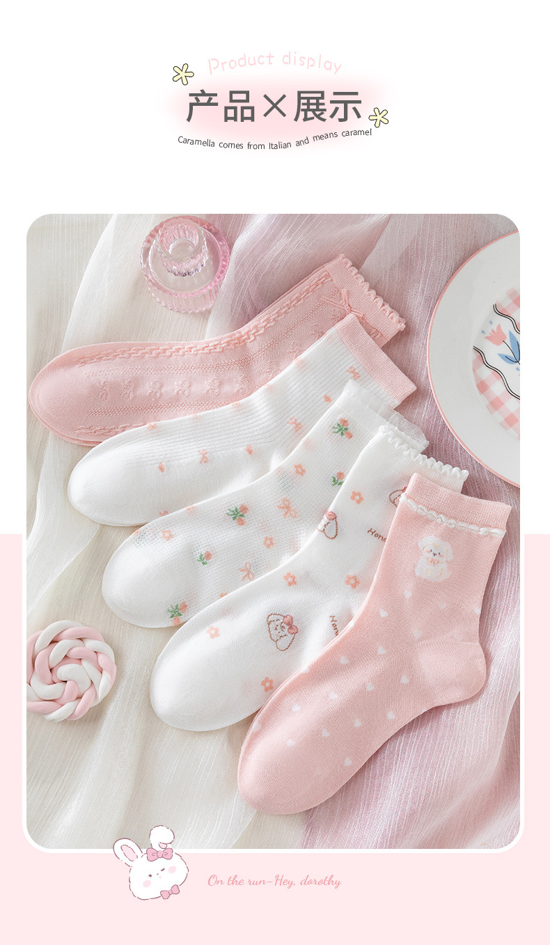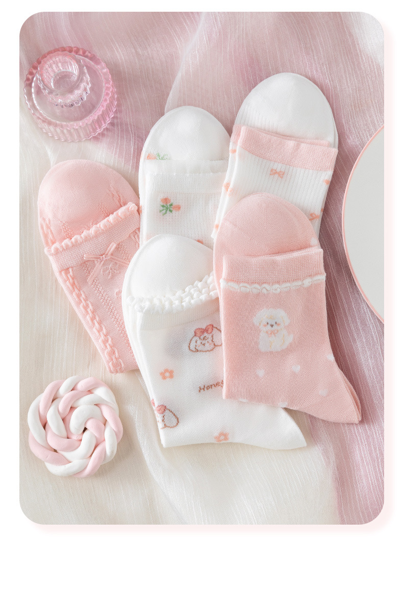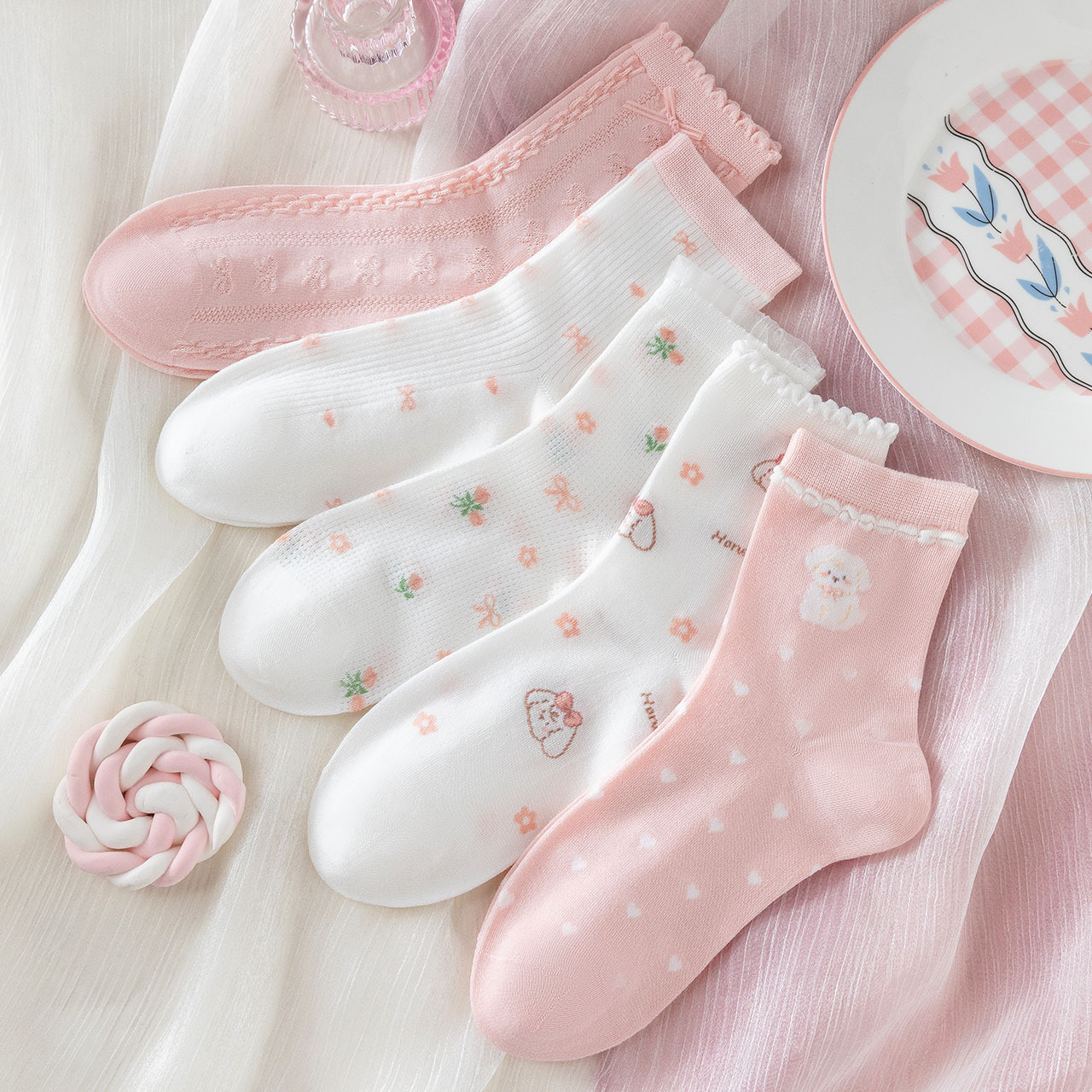 여성용 봄 여름 양말 5 쌍 만화 핑크 강아지 여성용 중간 튜브 양말 모달 얇은 메쉬 여성용 양말스토어 가기