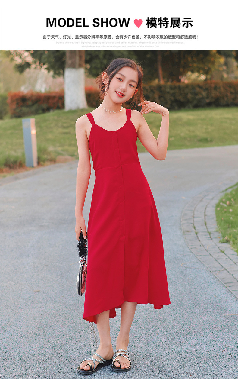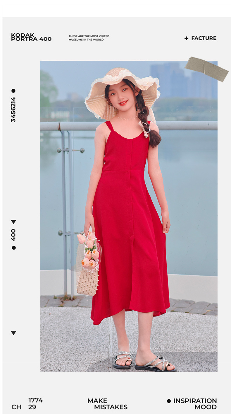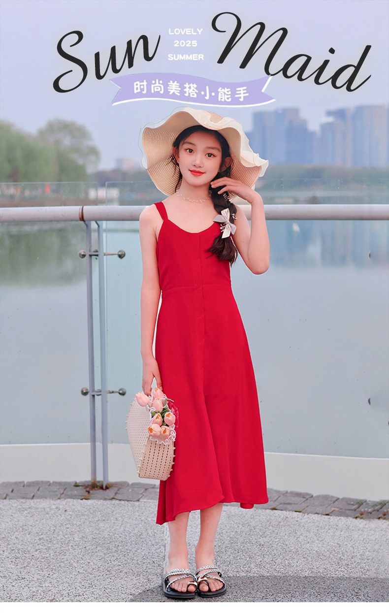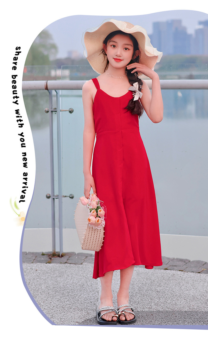 소녀 해변 휴일 해변 원피스 2025 년 여름 새 어린이 슬링 원피스 걸스 레드 롱 원피스스토어 가기
