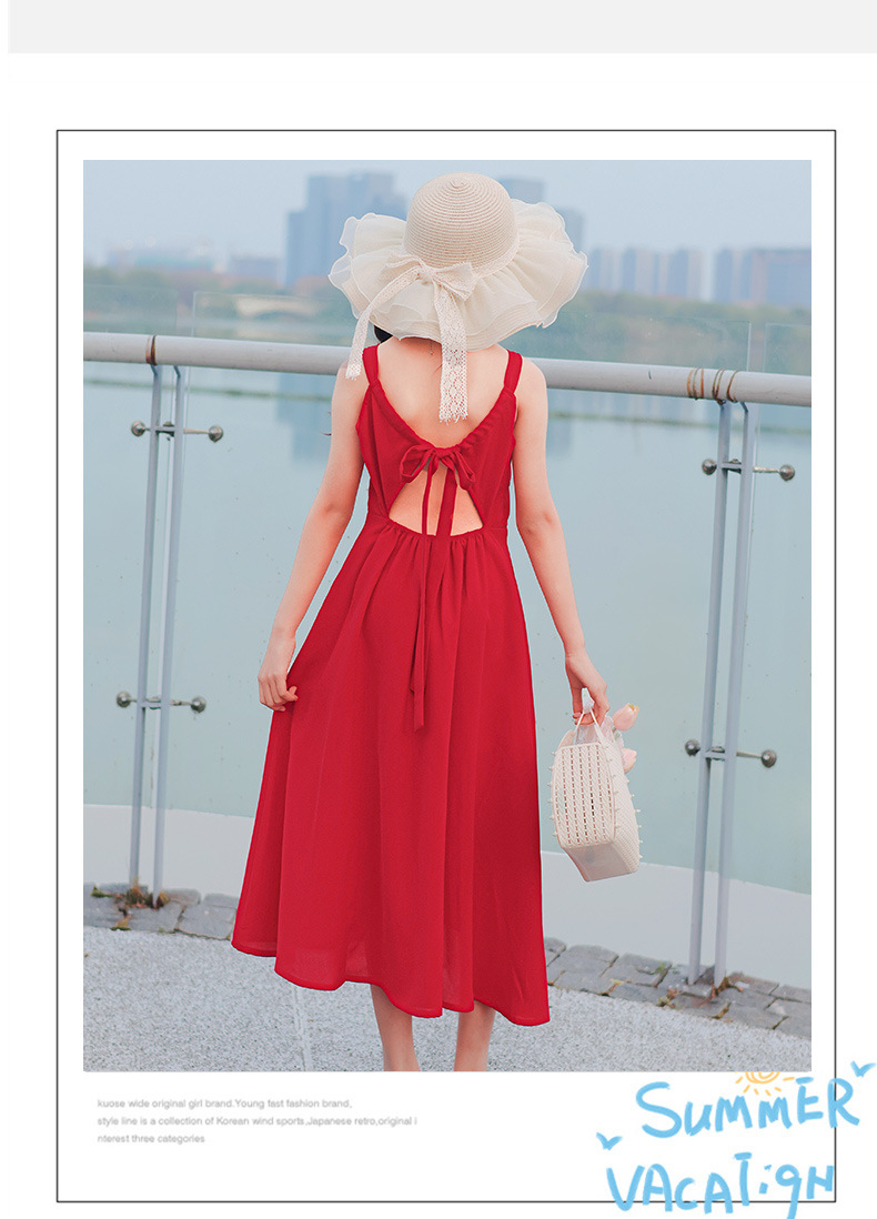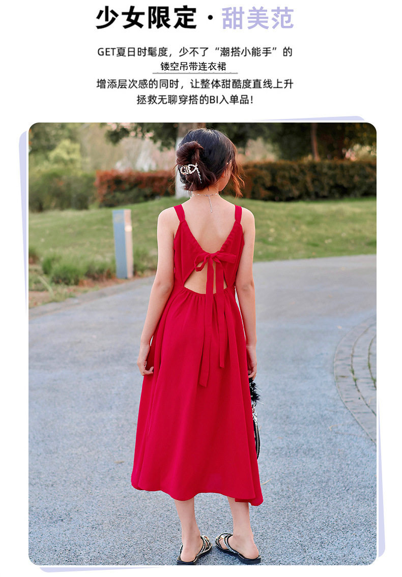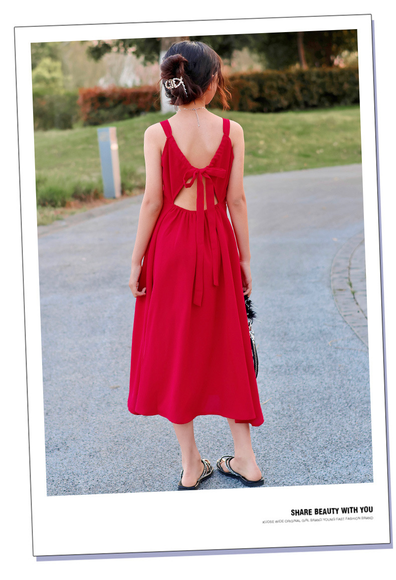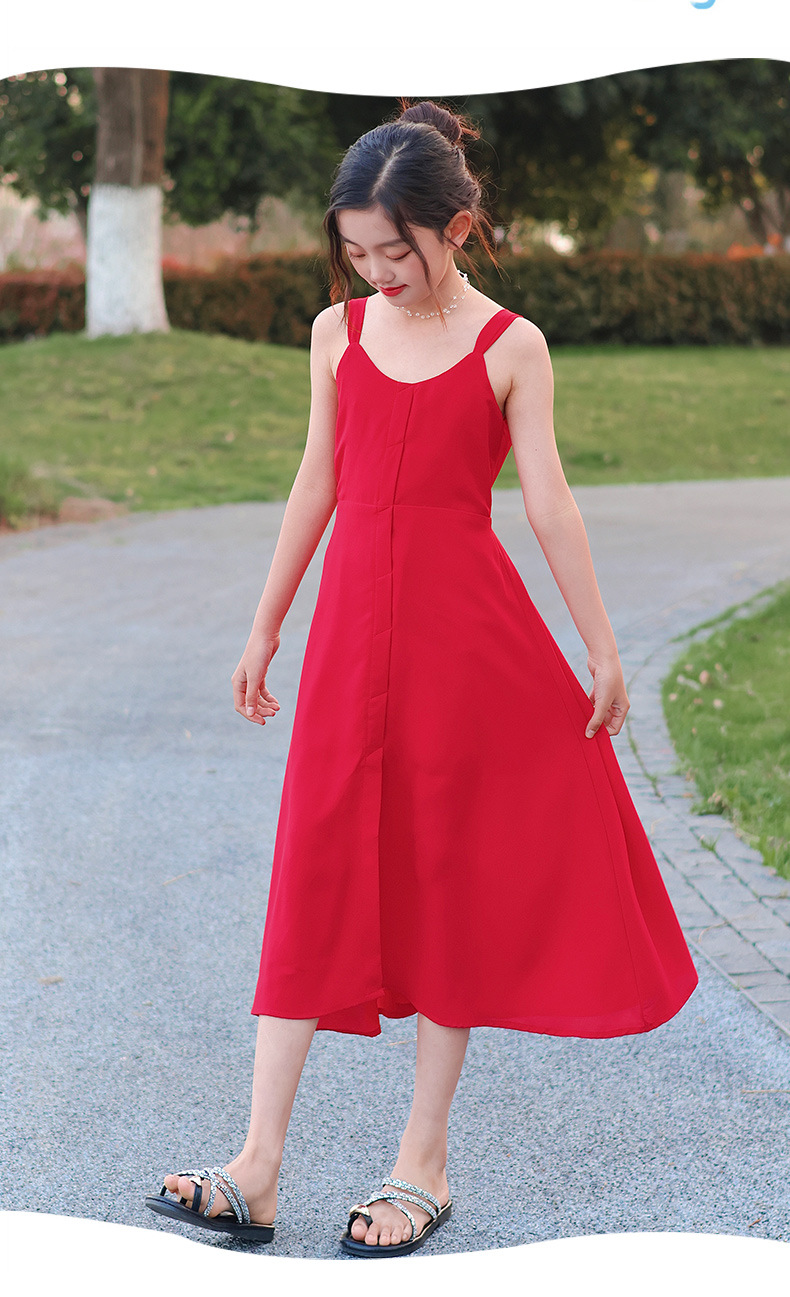소녀 해변 휴일 해변 원피스 2025 년 여름 새 어린이 슬링 원피스 걸스 레드 롱 원피스스토어 가기