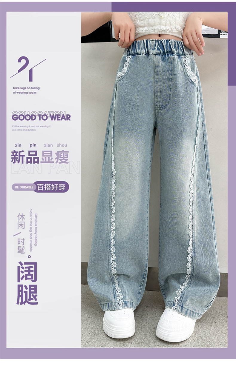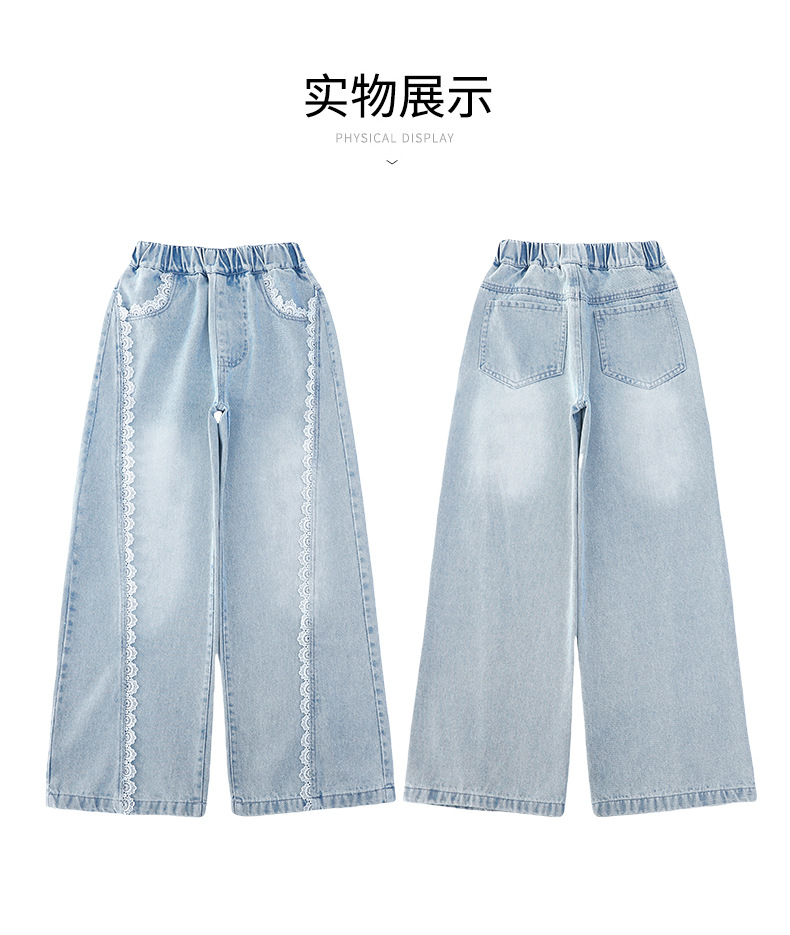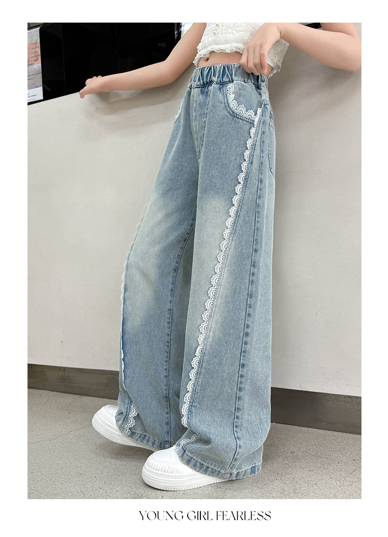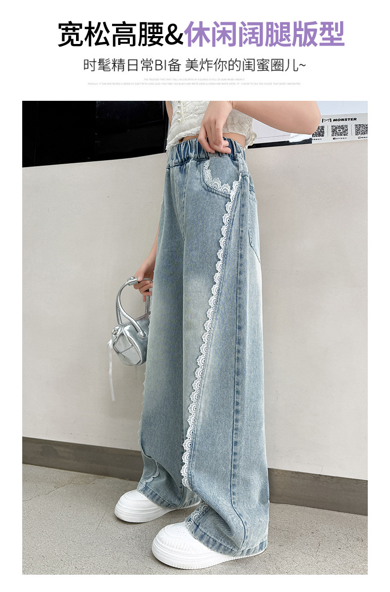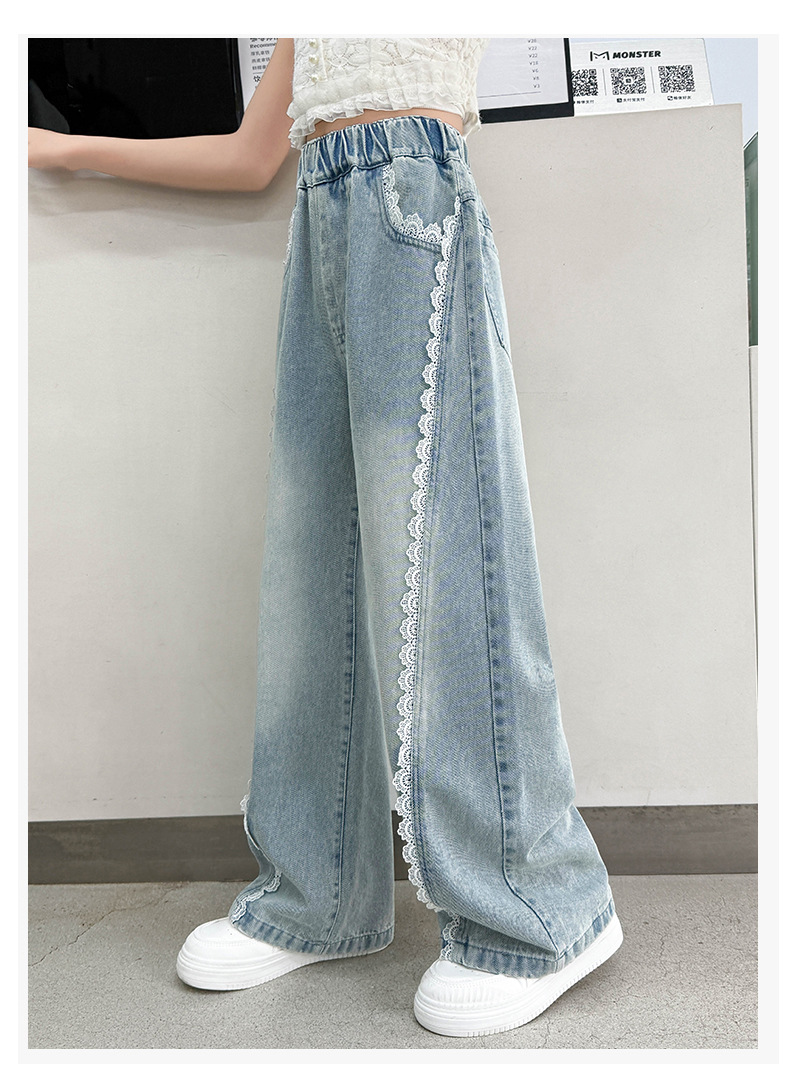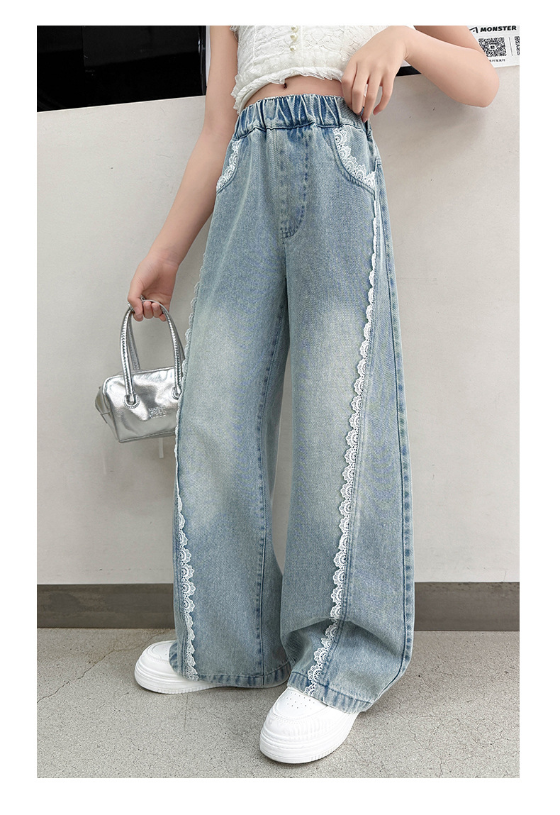 Huzhou Zhili 아동복 여아 여름 청바지 2025 새로운 여름 얇은 레이스 와이드 팬츠 유행스토어 가기