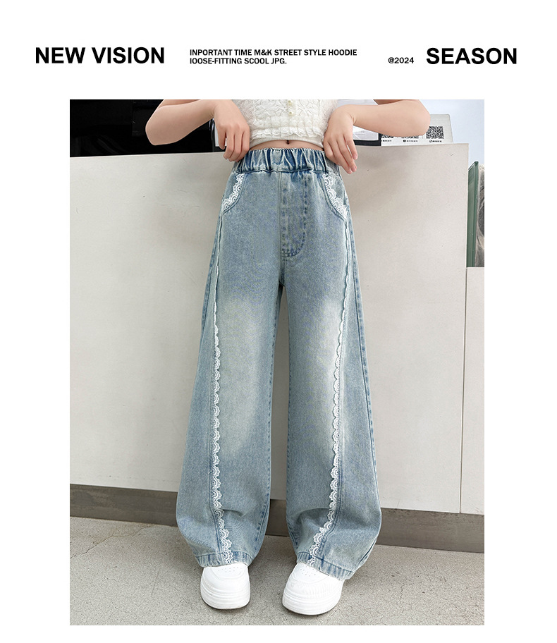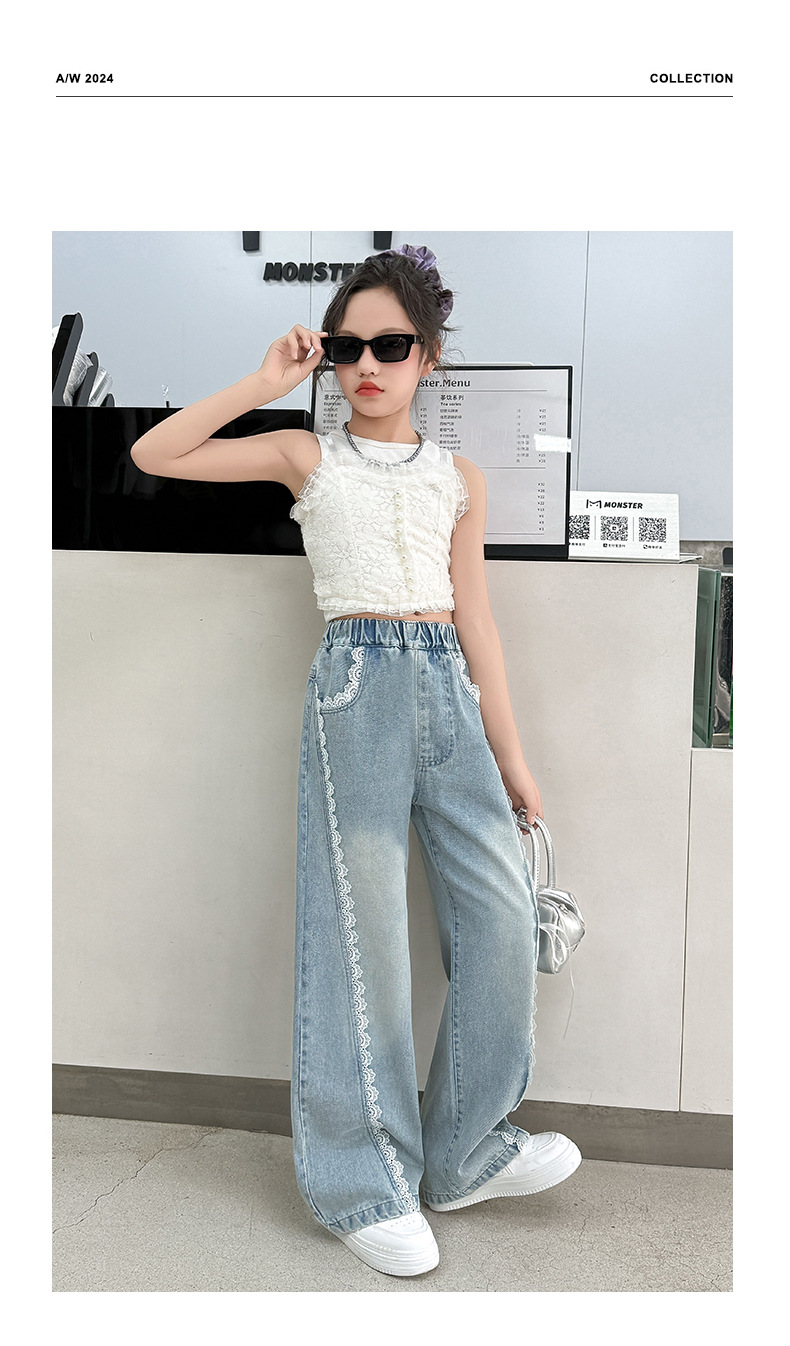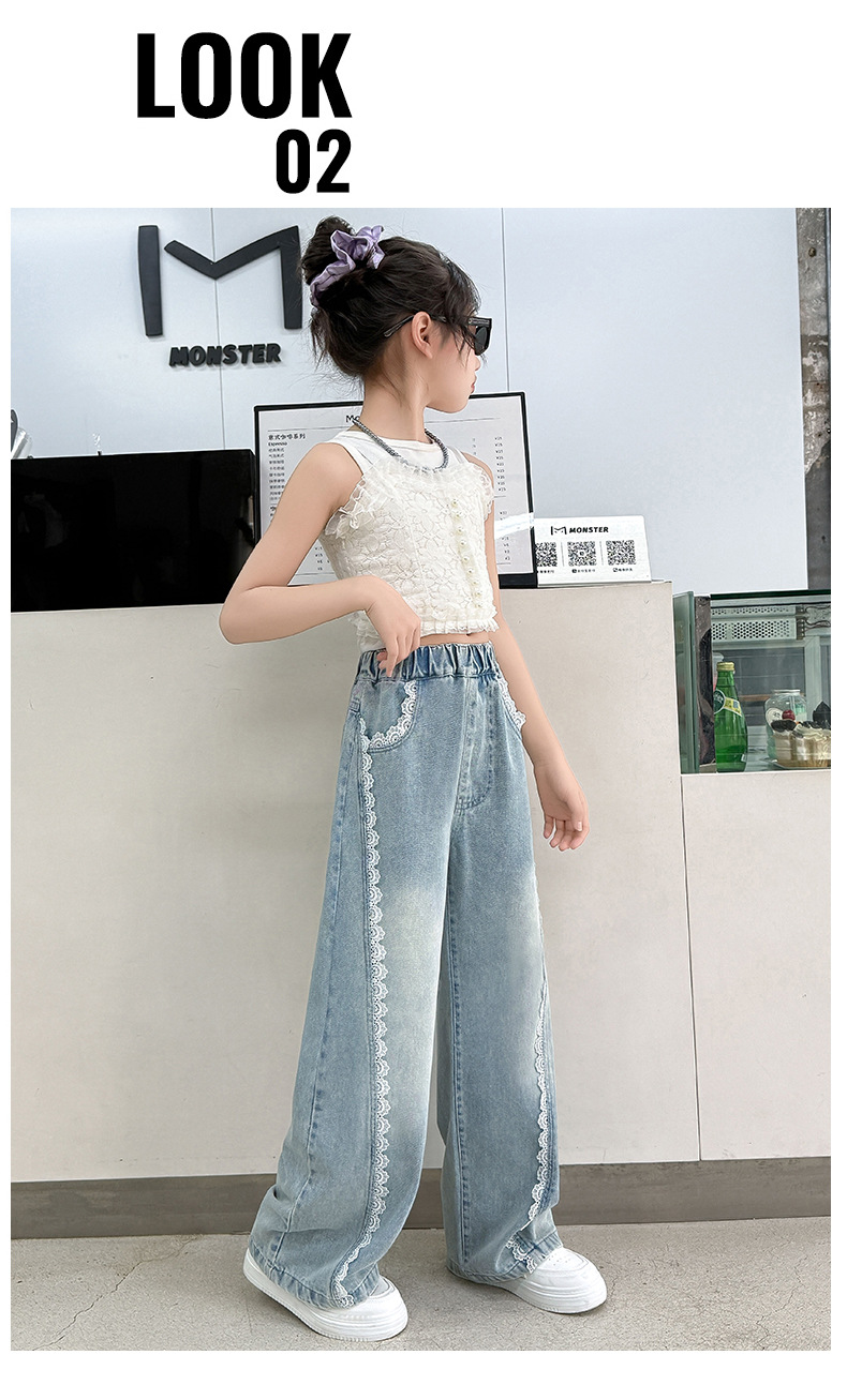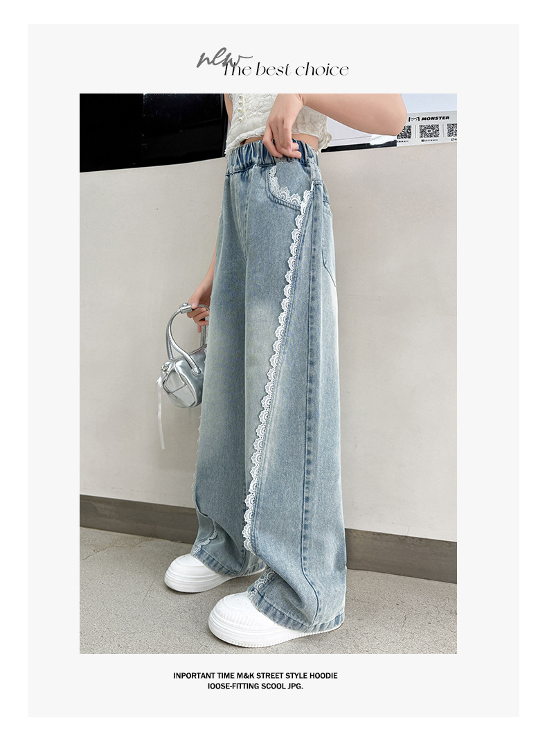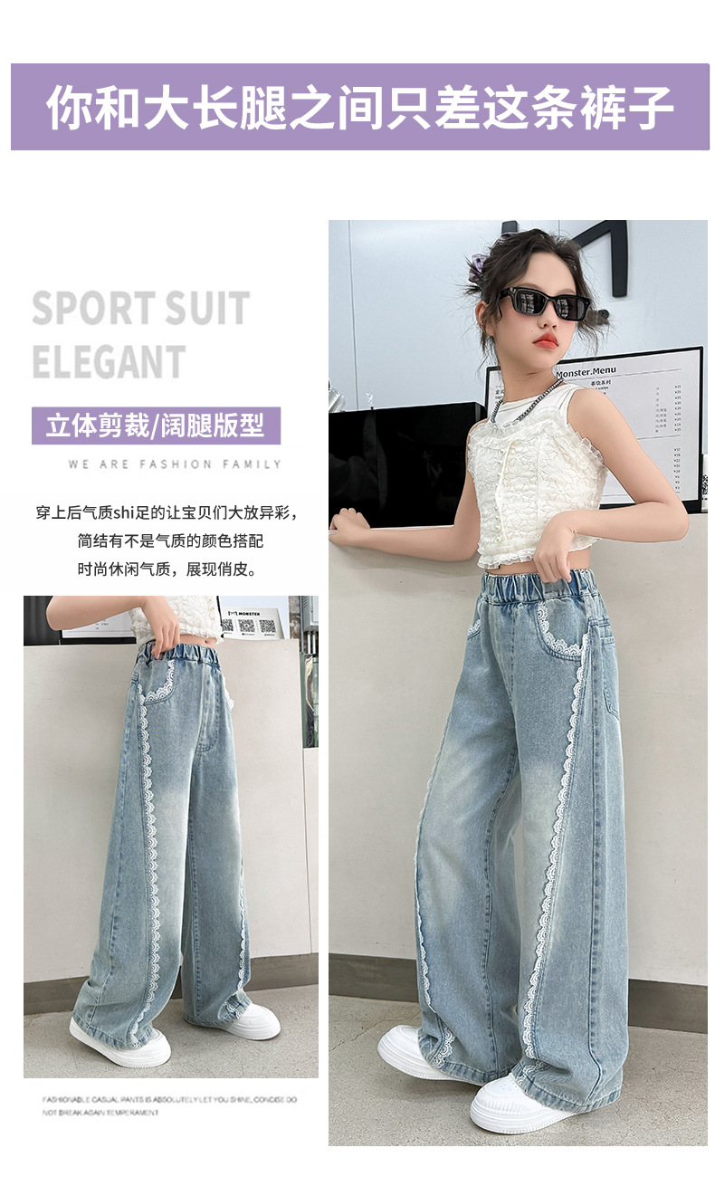 Huzhou Zhili 아동복 여아 여름 청바지 2025 새로운 여름 얇은 레이스 와이드 팬츠 유행스토어 가기