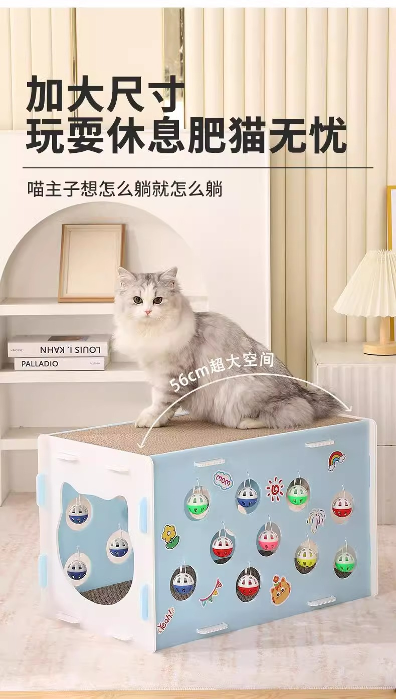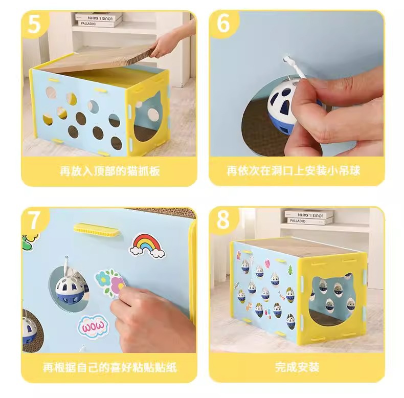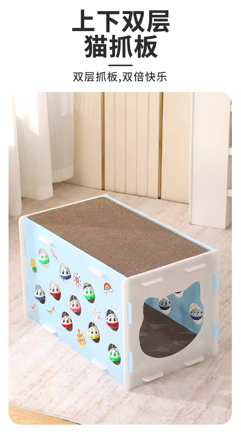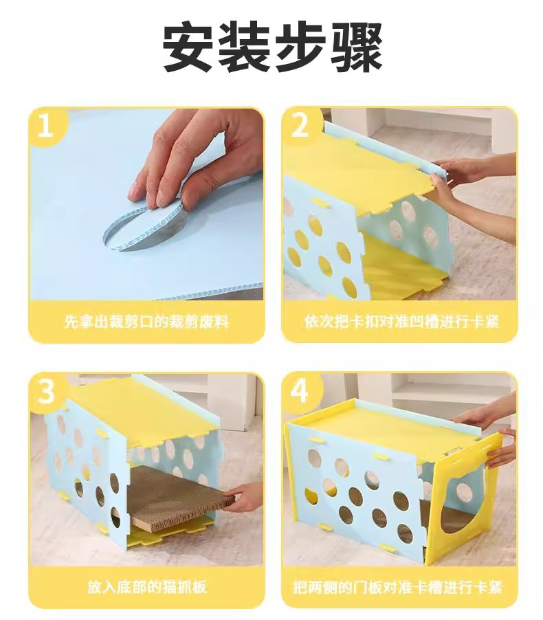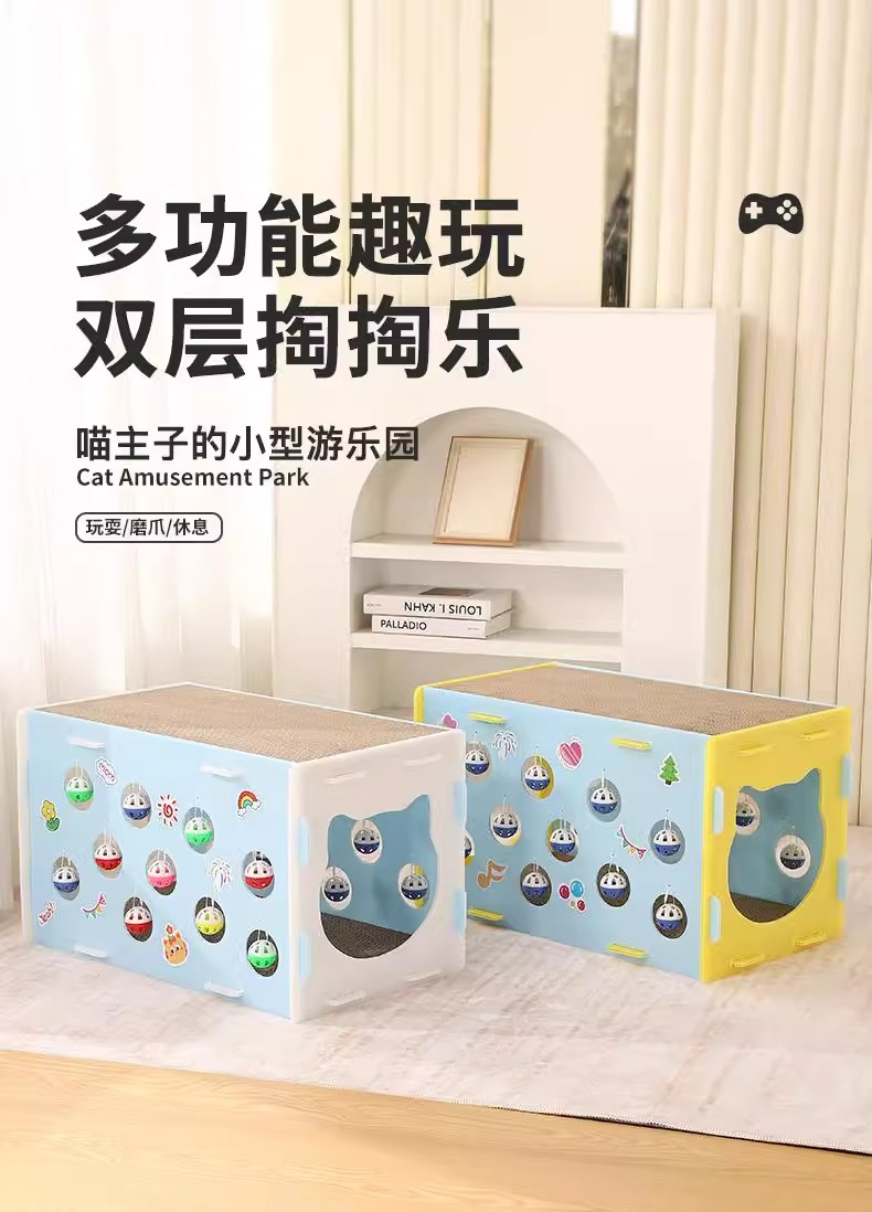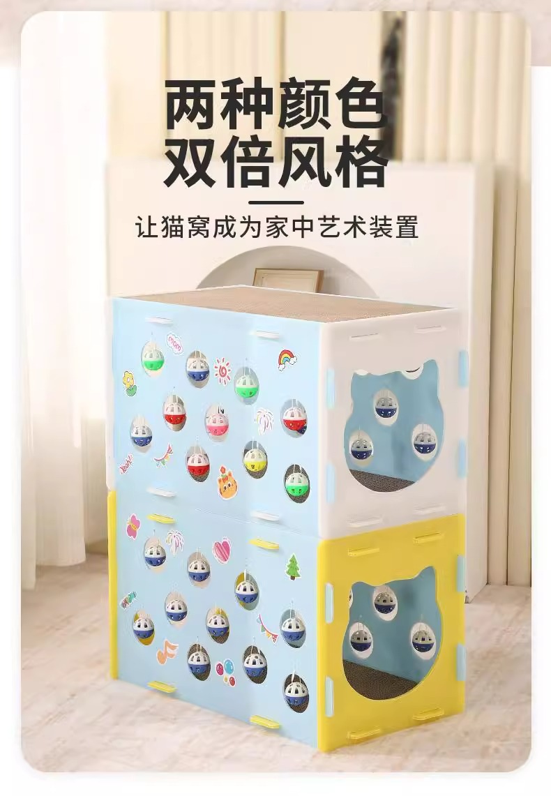 • [노란색과 파란색 배색] 자오자오르 고양이 긁는 기둥 + 고양이 둥지
