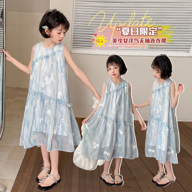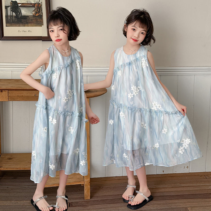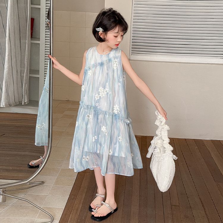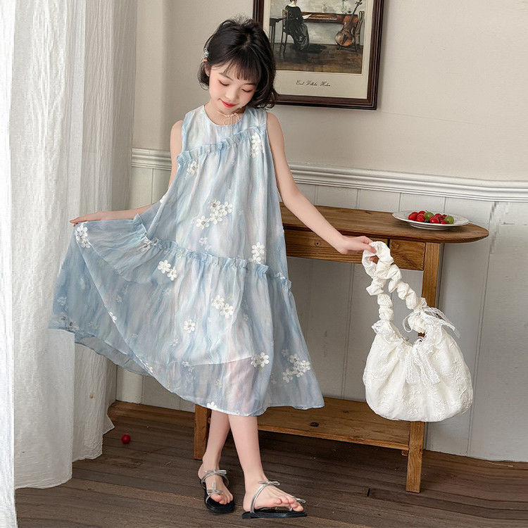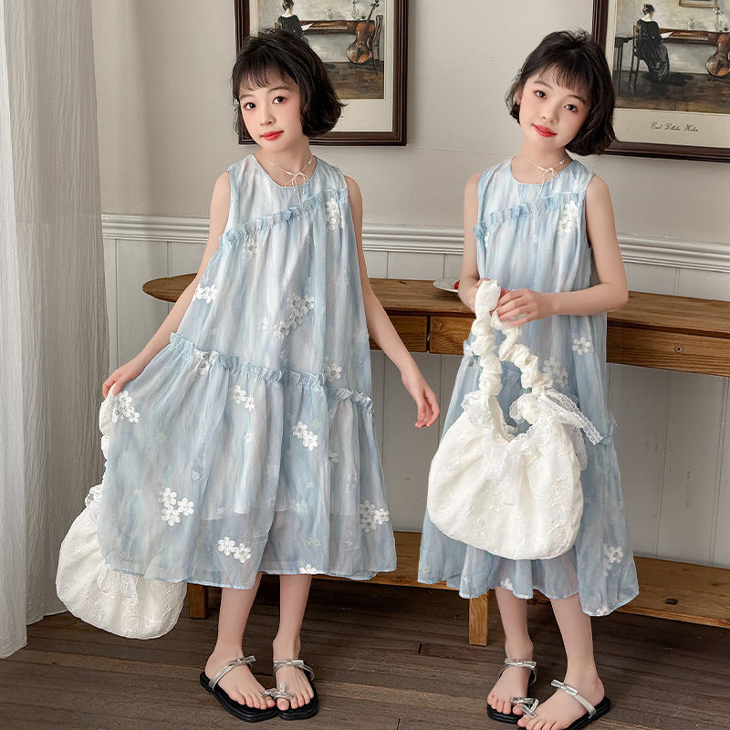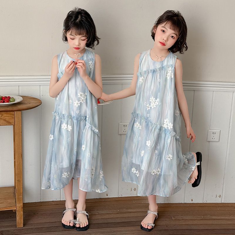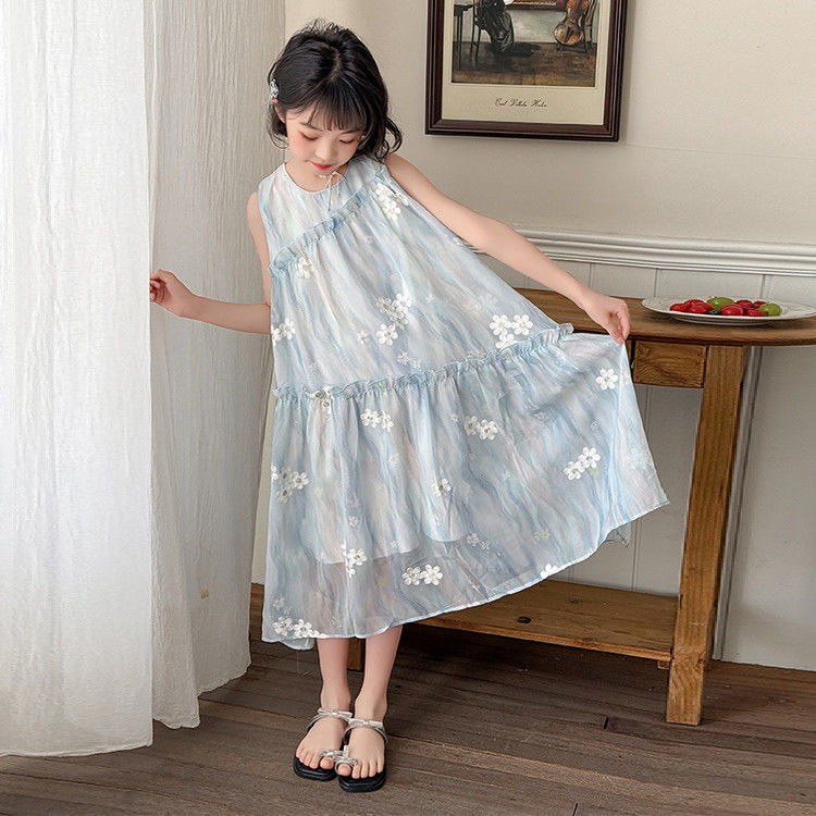 소녀의 여름 원피스 원피스 2025 새로운 스타일 어린이 여름 해변 원피스 소녀의 여름 쉬폰 공주 원피스스토어 가기