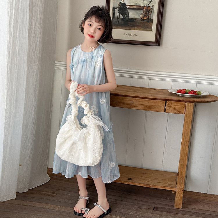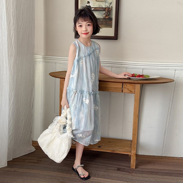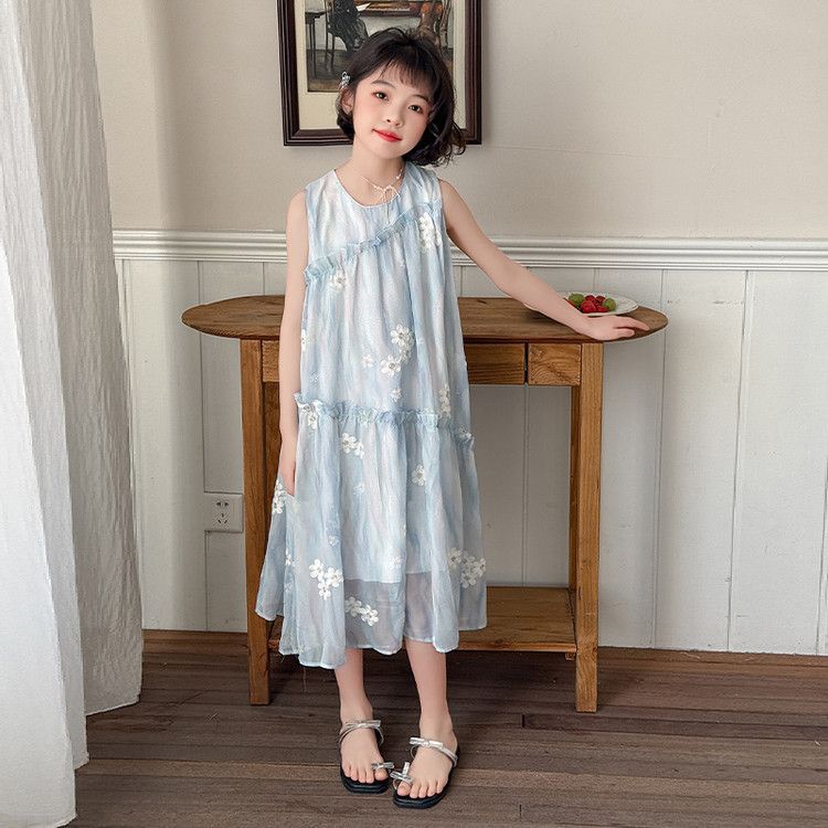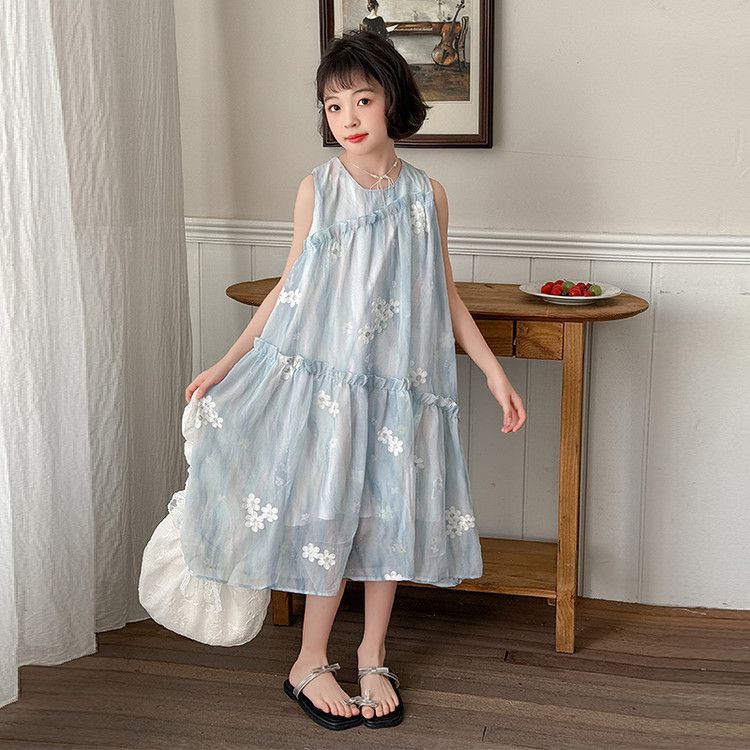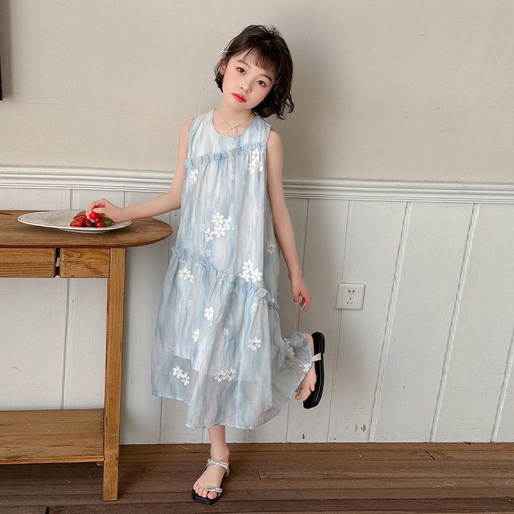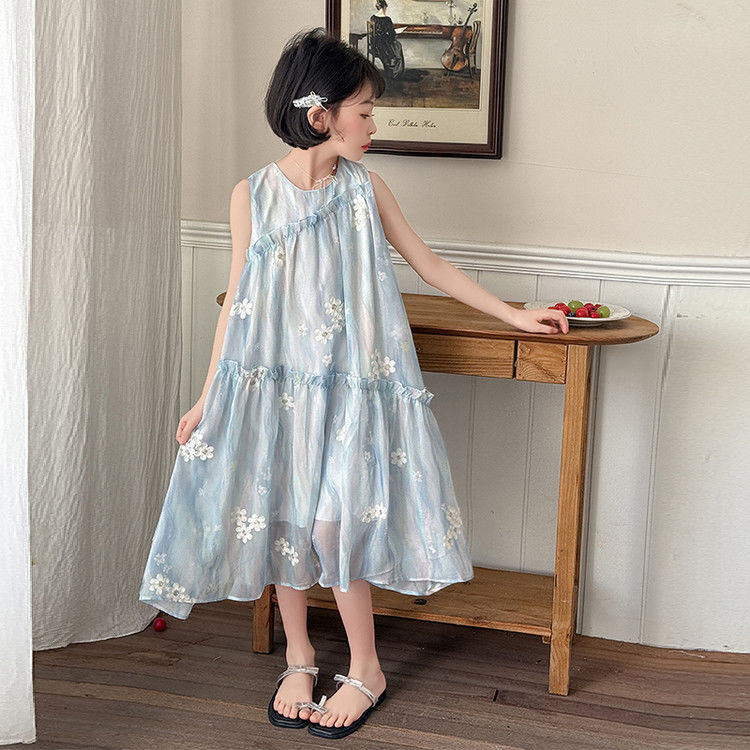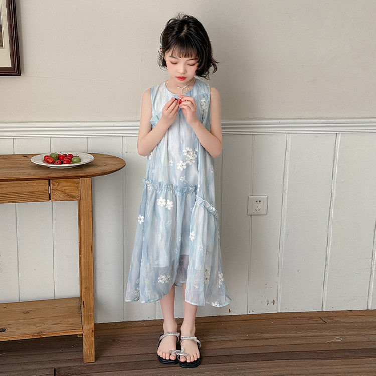 소녀의 여름 원피스 원피스 2025 새로운 스타일 어린이 여름 해변 원피스 소녀의 여름 쉬폰 공주 원피스스토어 가기