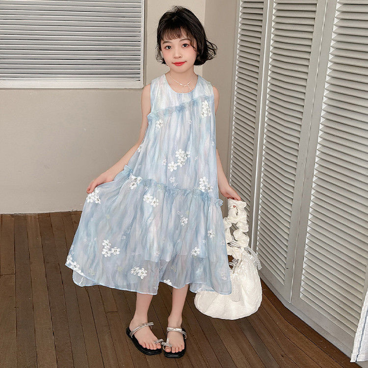 소녀의 여름 원피스 원피스 2025 새로운 스타일 어린이 여름 해변 원피스 소녀의 여름 쉬폰 공주 원피스