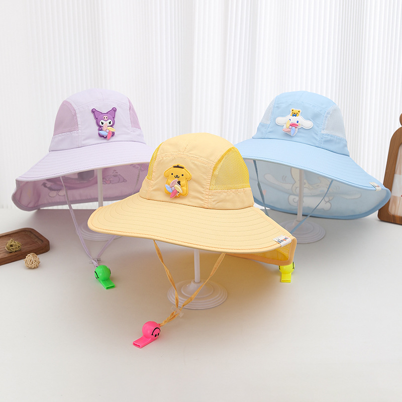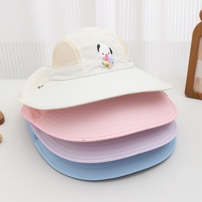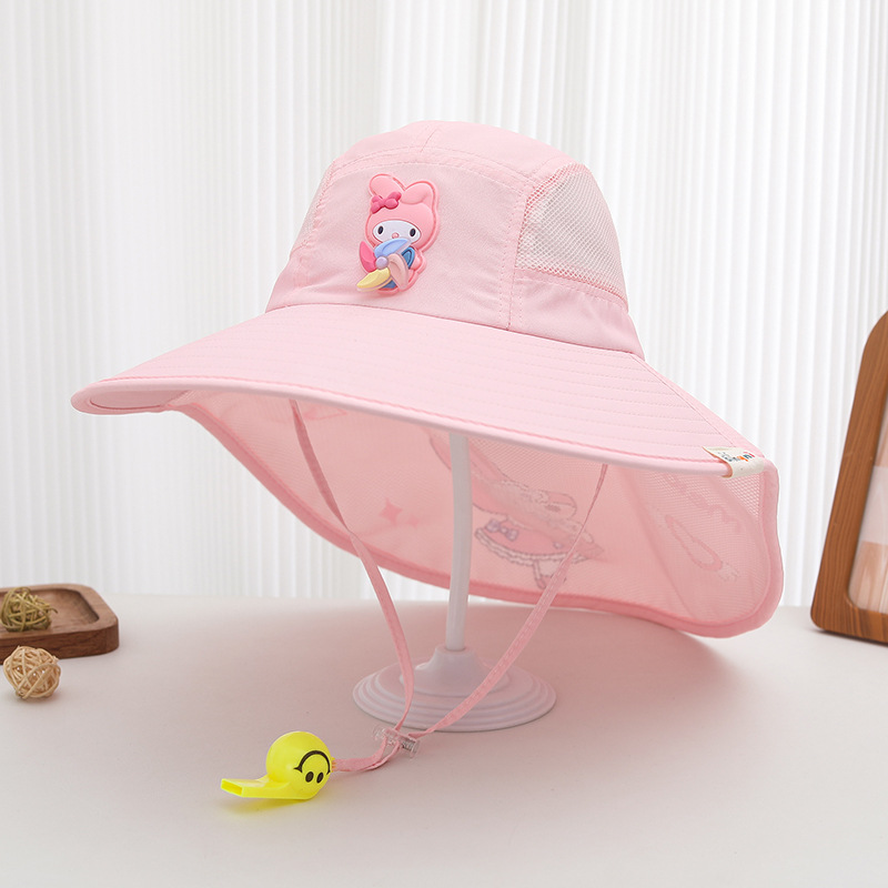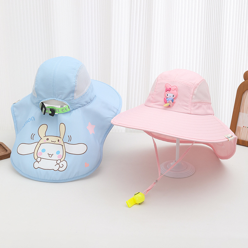어린이 선 스크린 모자 여름 소년의 태양 모자 소녀의 태양 모자 곰 통기성 대형 브림 안티 UV 목도리 모자