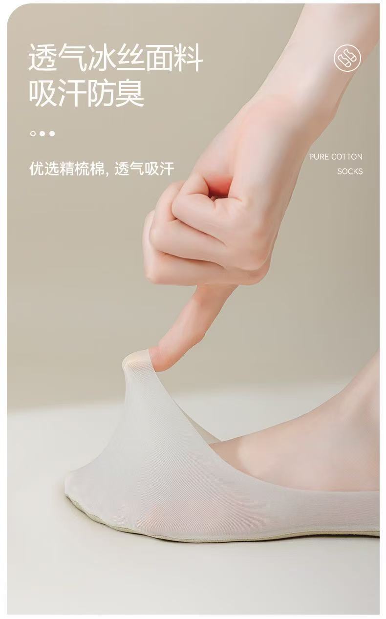 보이지 않는 양말 도매 여성의 봄과 여름 얇은 얼음 실크 실리콘 미끄럼은 보트 양말 면화 바닥 땀 흡수성 얕은 입 여성용 양말로 떨어지지 않습니다.스토어 가기