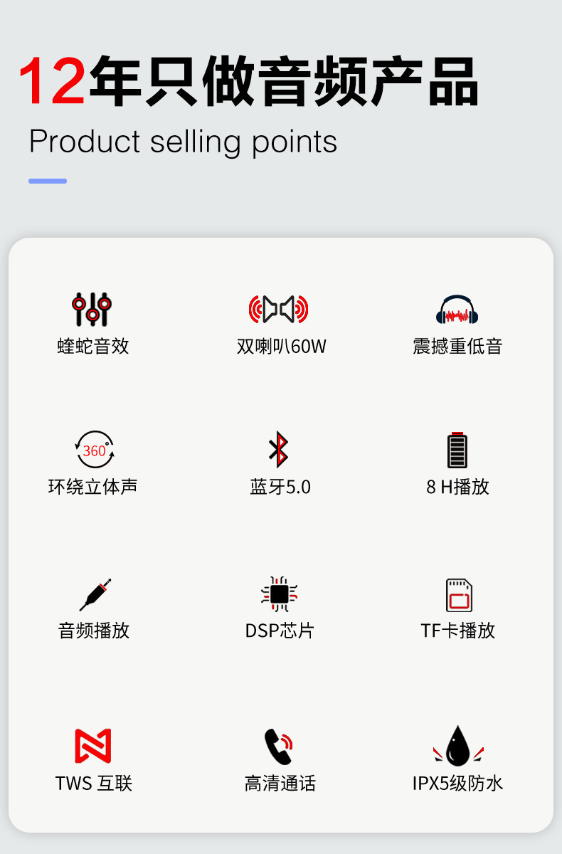 공장 직접 공급 DSP 블루투스 스피커 고출력 및 고급 60W 중저음 블루투스 5.0 방수 스피커 서브우퍼스토어 가기