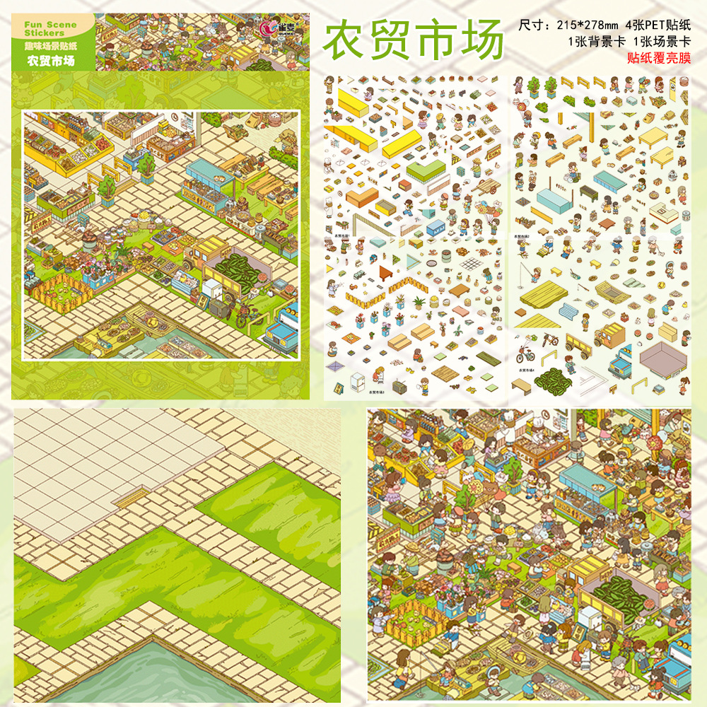 브롬 밀 10.0 조경 스티커 역설 도시 농민 시장 워터 파크 3 차원 미니어처 장면 감압 애완 동물 컷 프리스토어 가기