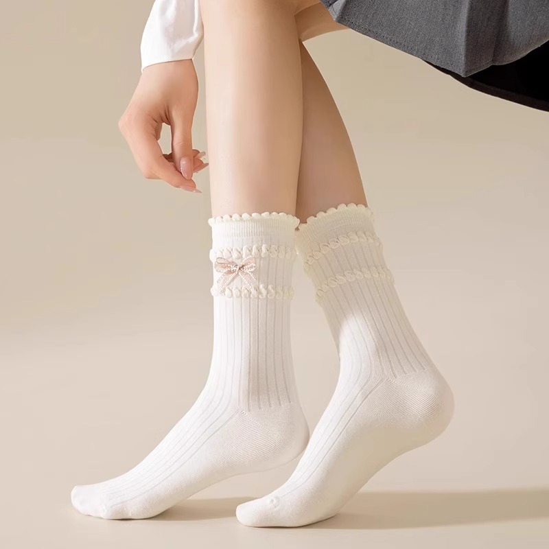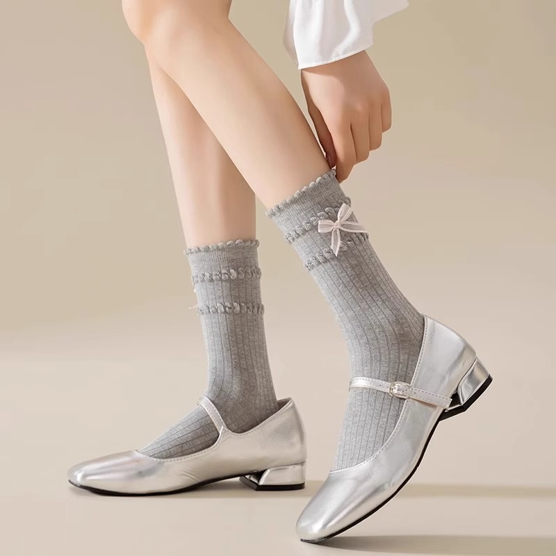 2025 새로운 일본 발레 스타일 양말 여성 중형 양말 Instagram 유행 봄과 여름 귀여운 활 양말스토어 가기