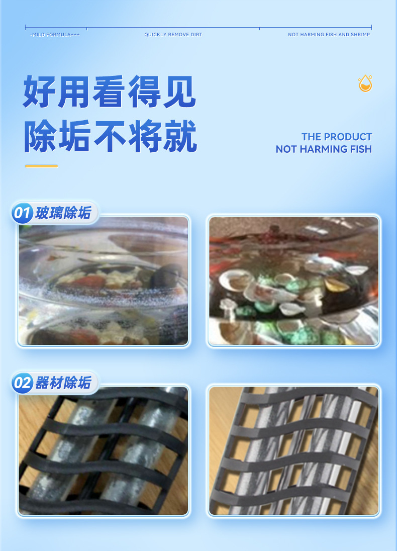 어항 청소 세제 무손상 어류 및 새우 식품 등급 구연산 어류 탱크 세제 유리 스케일 세제