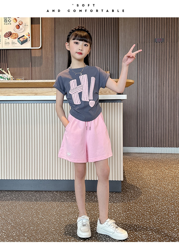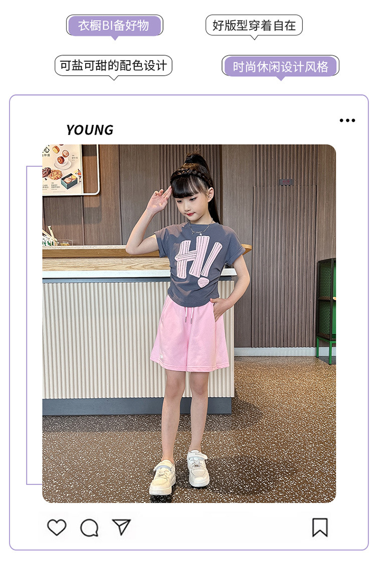 여아 여름 반팔 양복, 중대형 아동복 2025 여름 신작 얇은 티셔츠와 반바지 투피스 세트 트렌디스토어 가기