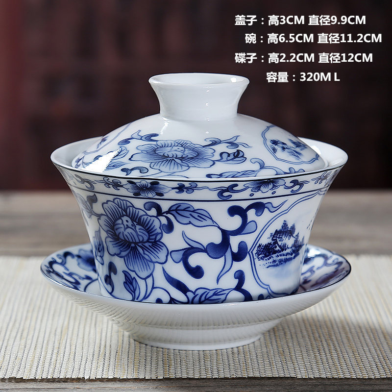 파란색과 흰색 도자기 뚜껑 그릇 차 컵 대형 백자 세라믹 쿵푸 차 세트 차 그릇 주전자 싱글스토어 가기