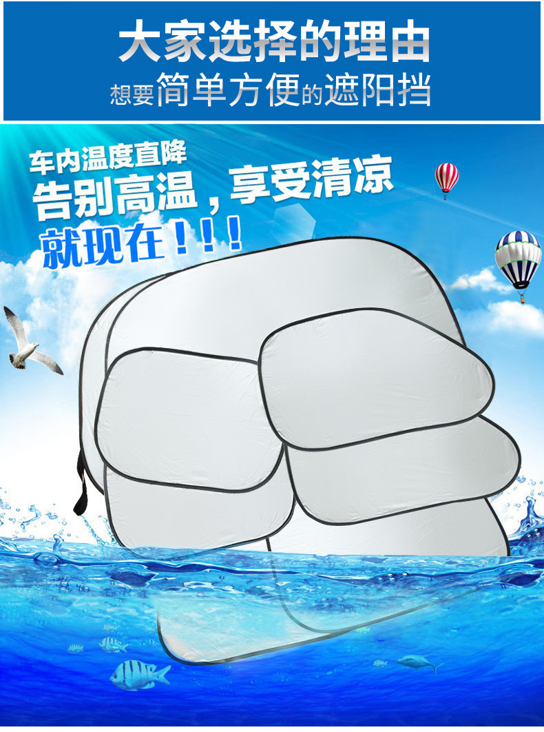 【产品说明】:炎炎夏季爱车免不了要停靠在烈日之下,如果长期暴晒,不采取遮阳降温的措施,爱车很可能会发生车内皮革晒裂,塑料件过早老化,甚至大大减少使用寿命,对您的爱车肯定造成不小的伤害。