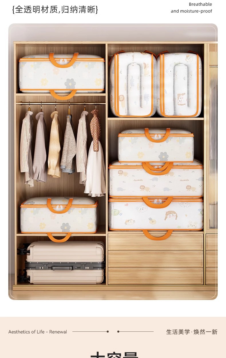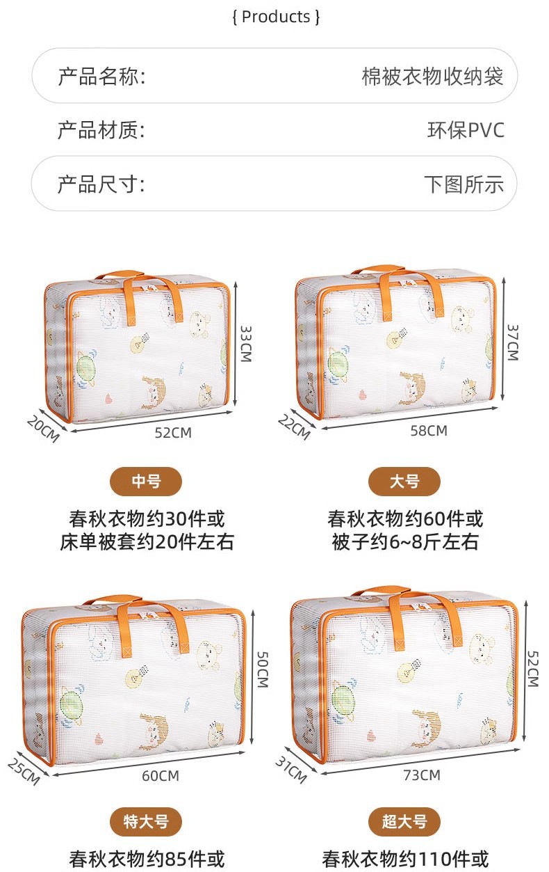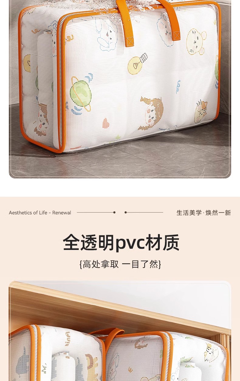 이불 저장 가방 투명한 PVC 이불 가방 포장 움직이는 유물 가정용 대용량 방수 수분 방지 저장 가방