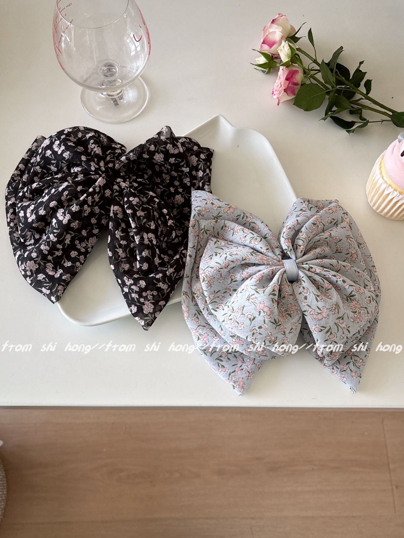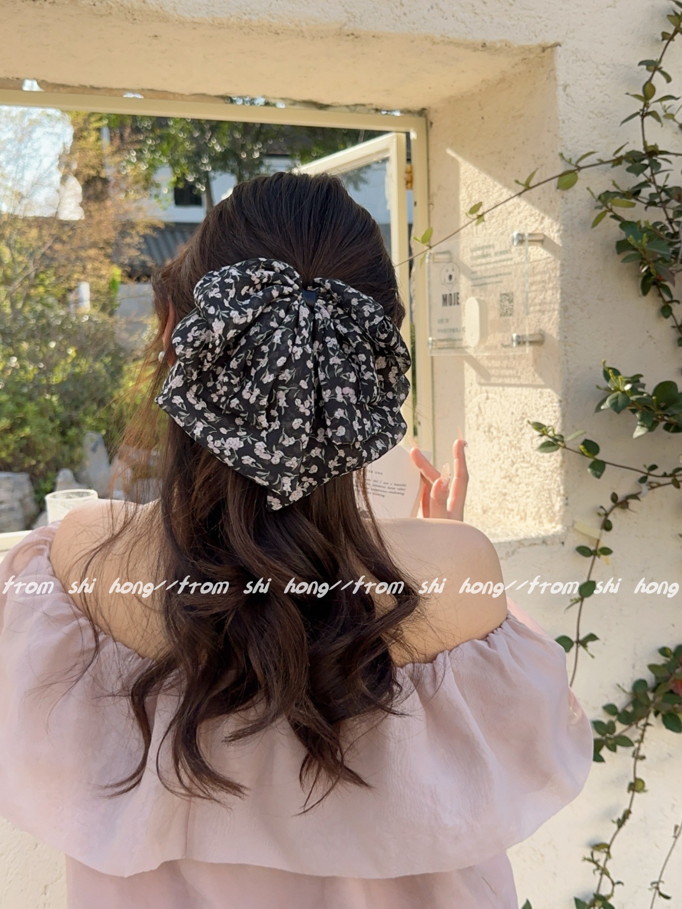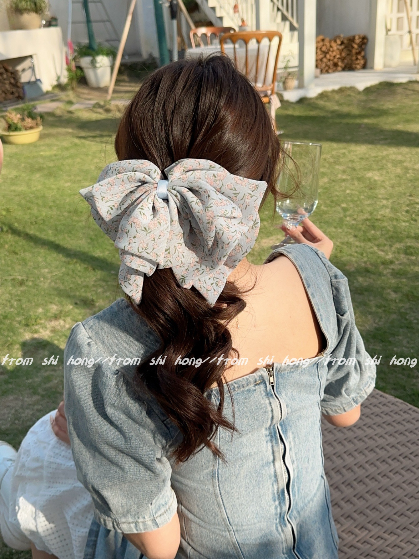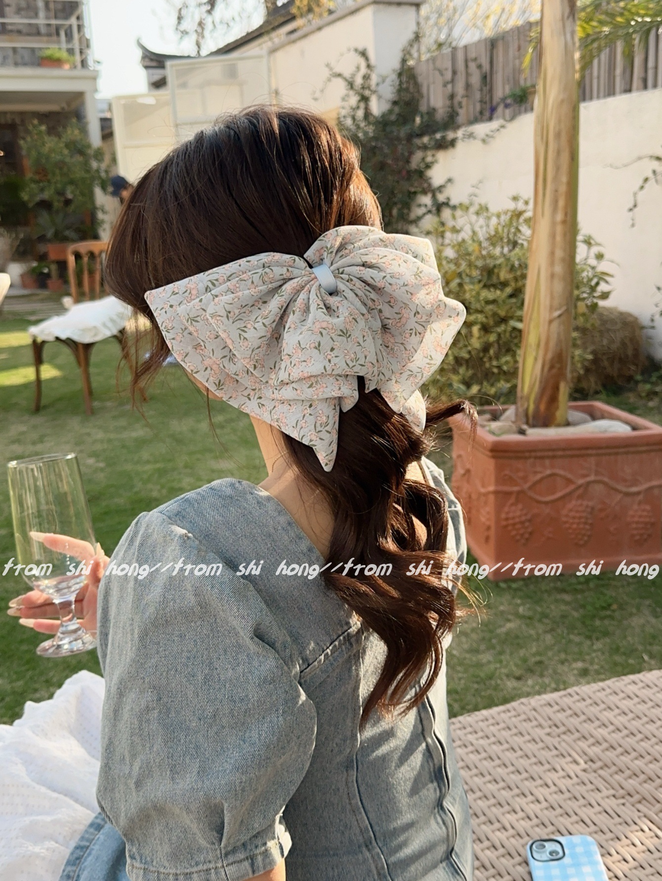 게으른 휴일 빈티지 툴레 보우 플로랄 클립 리본 헤어핀 백 헤드 하프 타이 헤어 헤드웨어 헤어핀