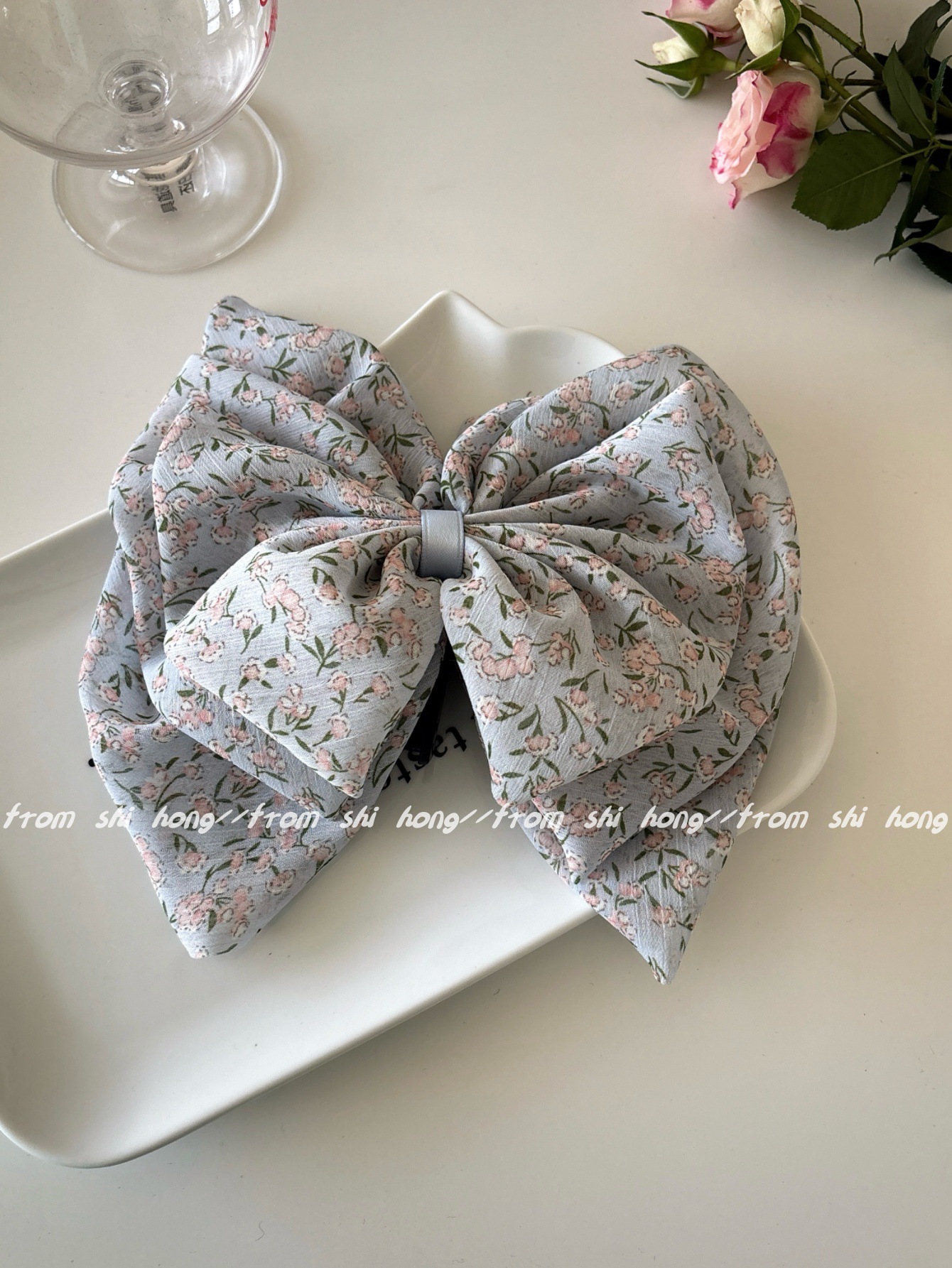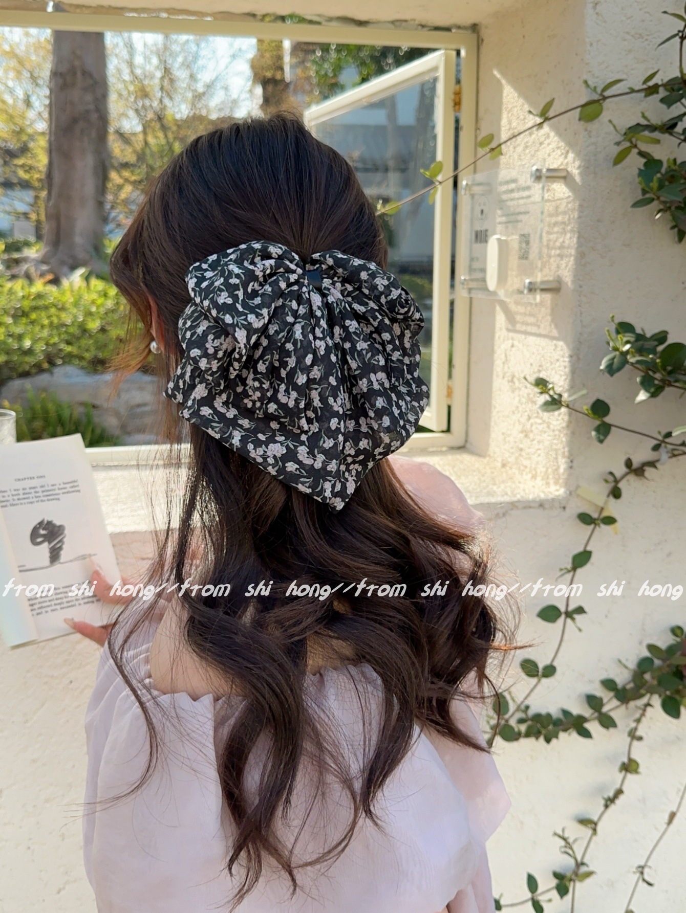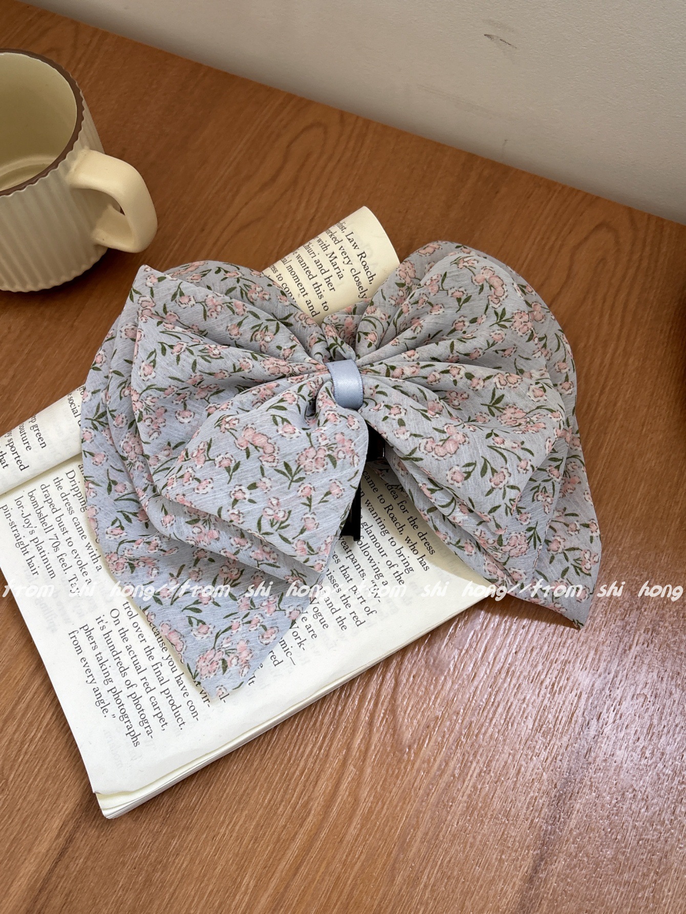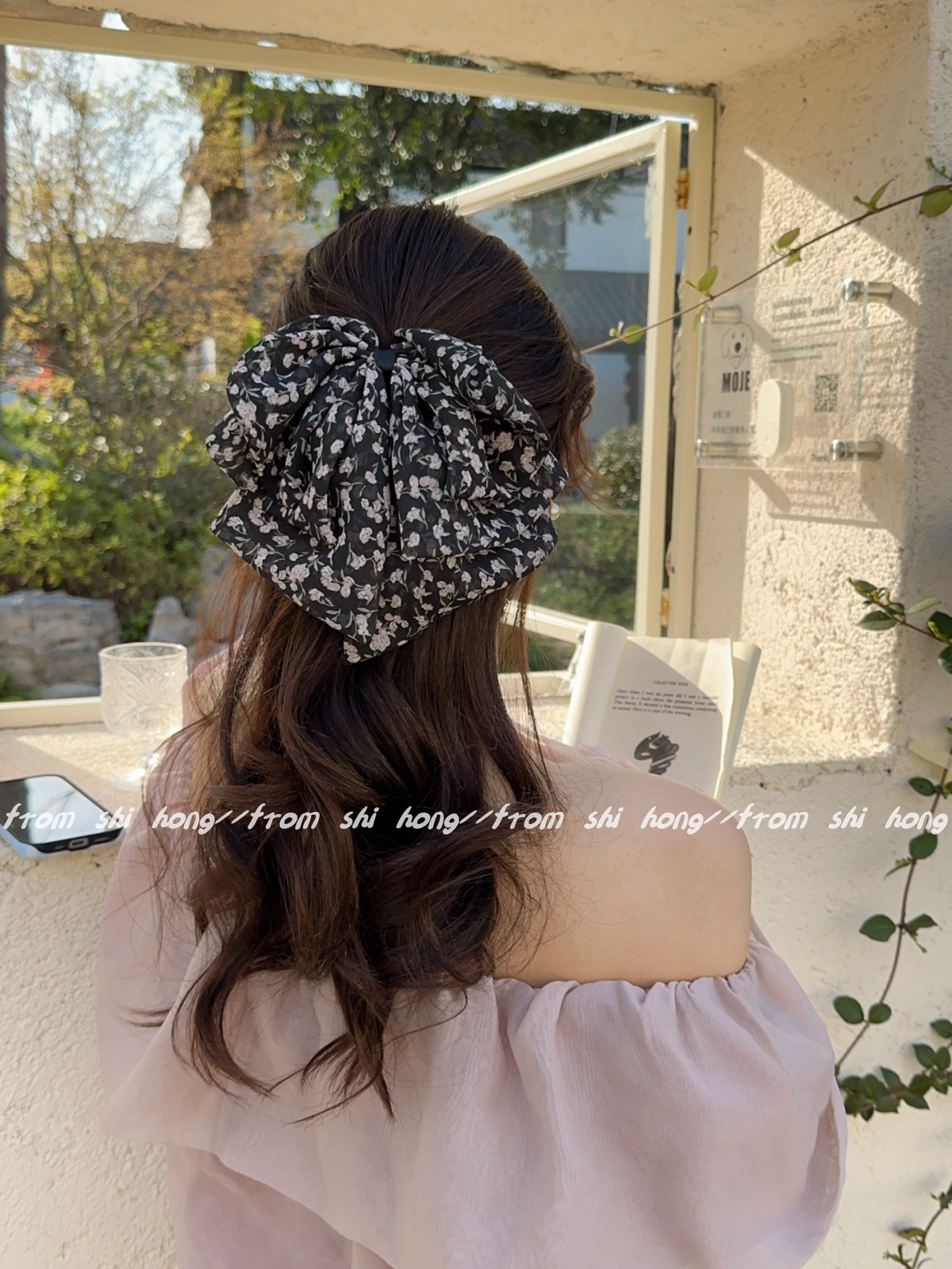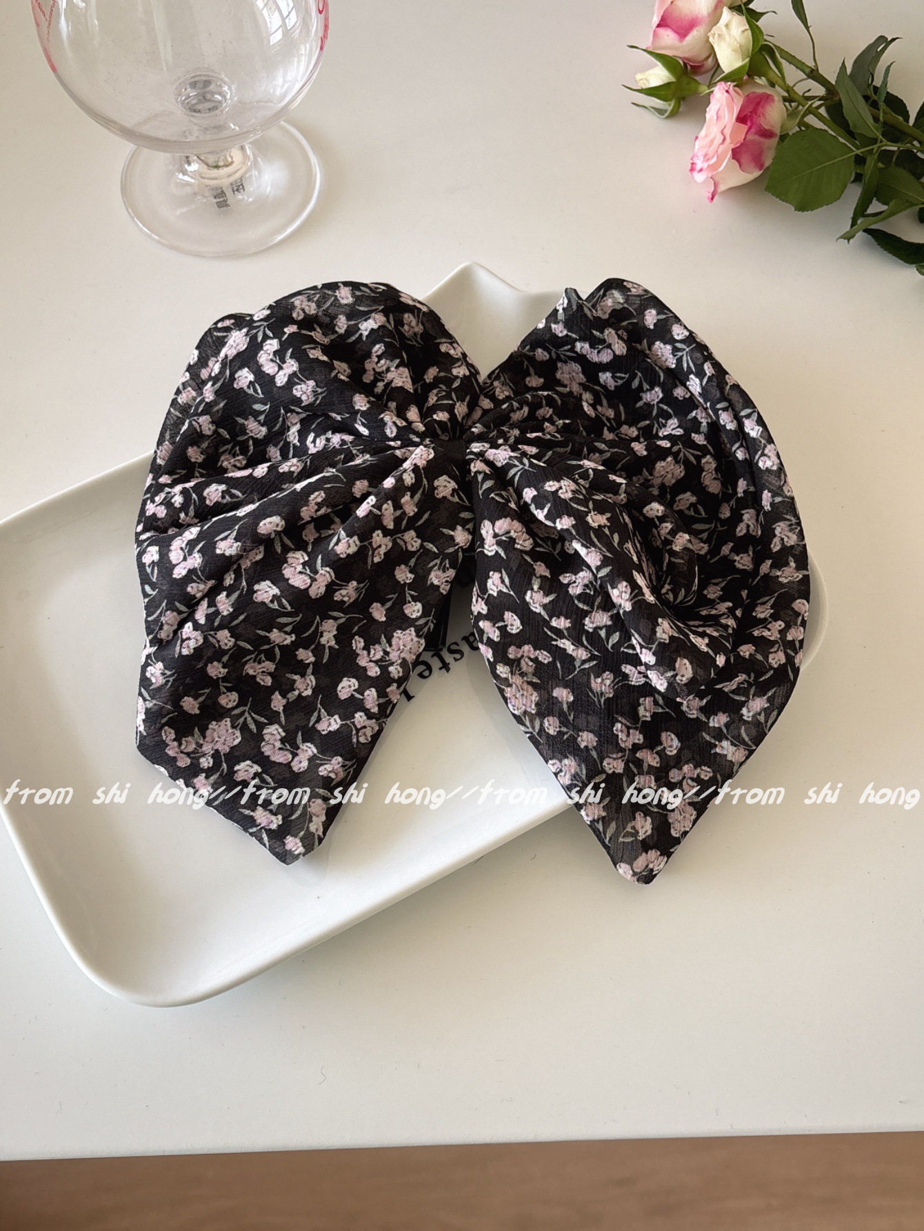 게으른 휴일 빈티지 툴레 보우 플로랄 클립 리본 헤어핀 백 헤드 하프 타이 헤어 헤드웨어 헤어핀