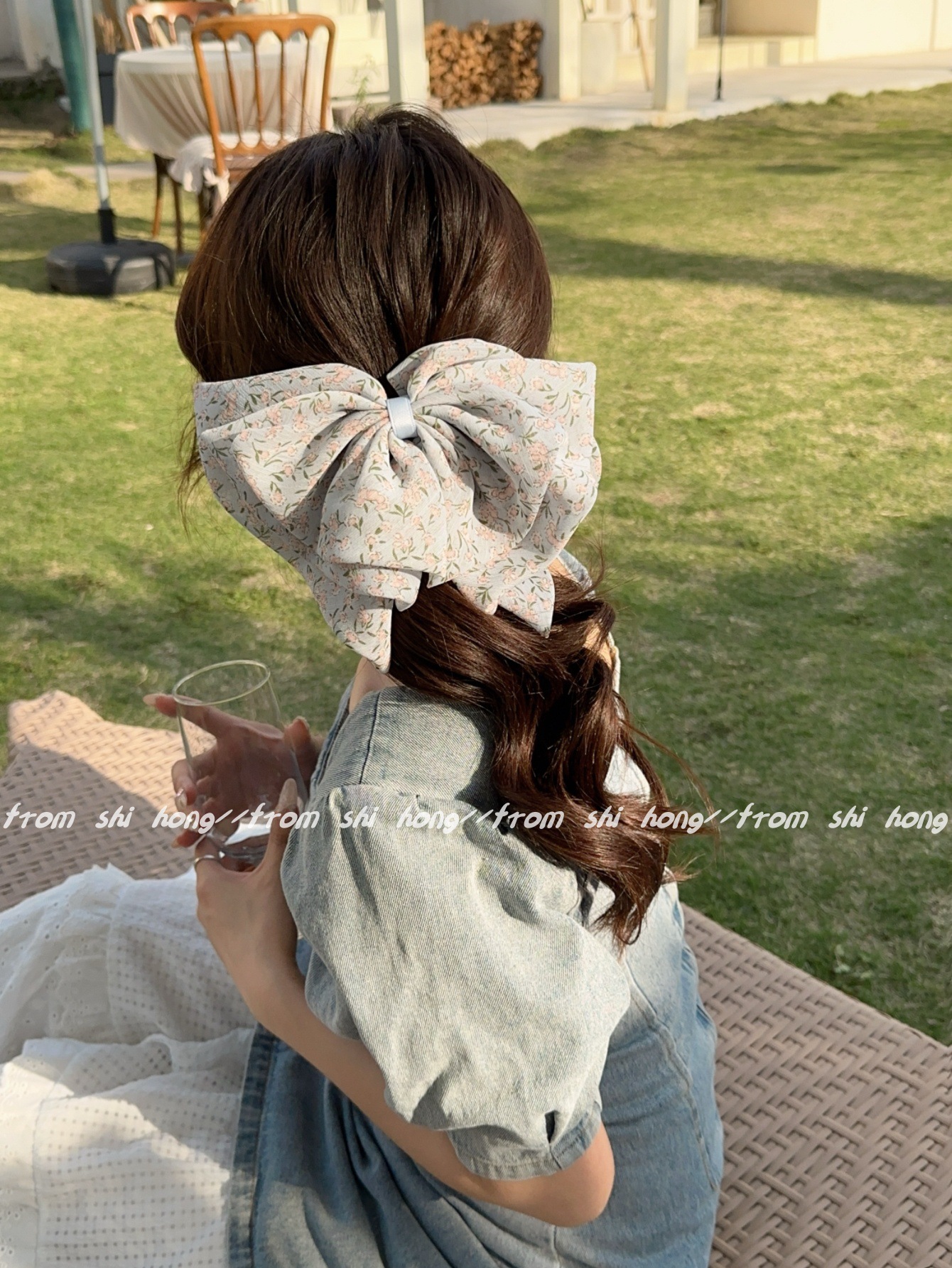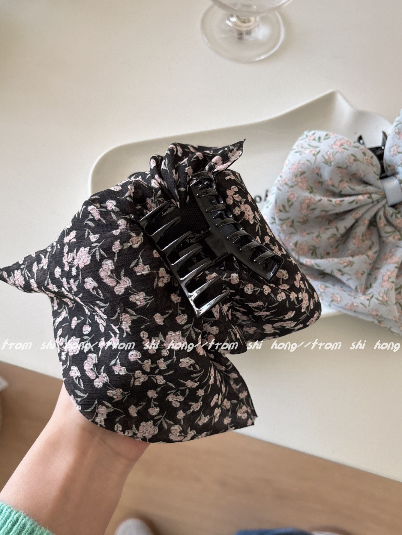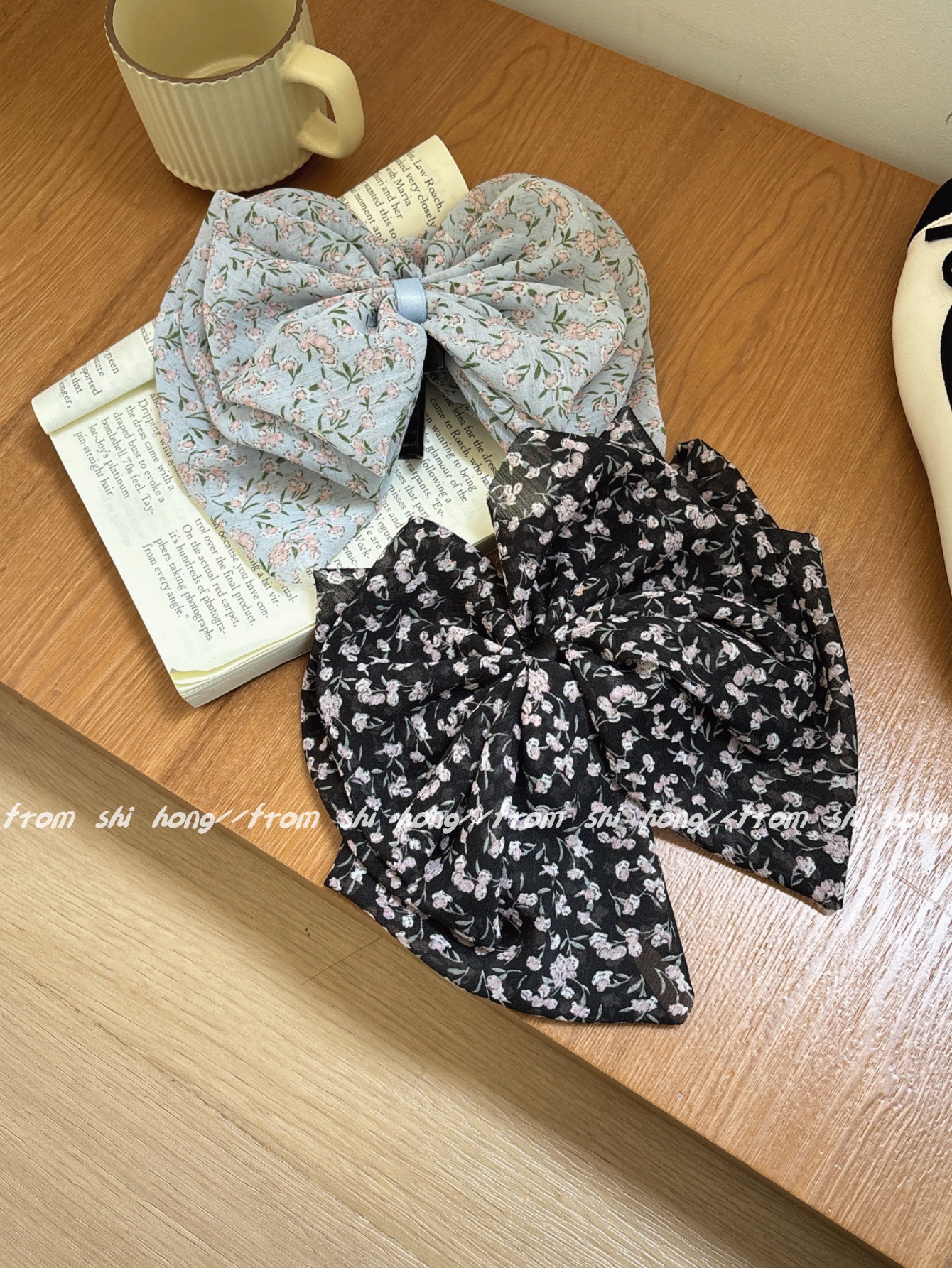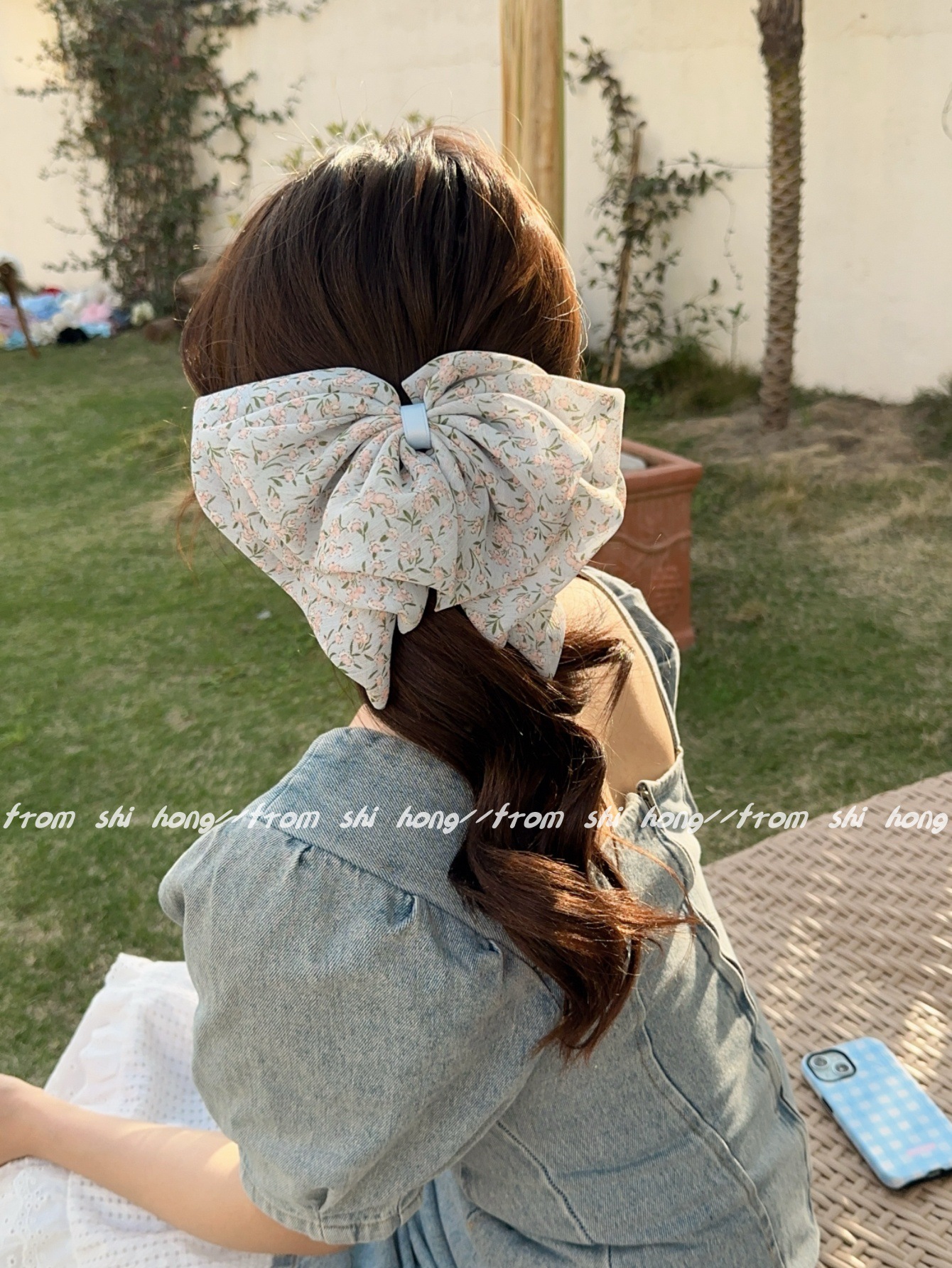게으른 휴일 빈티지 툴레 보우 플로랄 클립 리본 헤어핀 백 헤드 하프 타이 헤어 헤드웨어 헤어핀