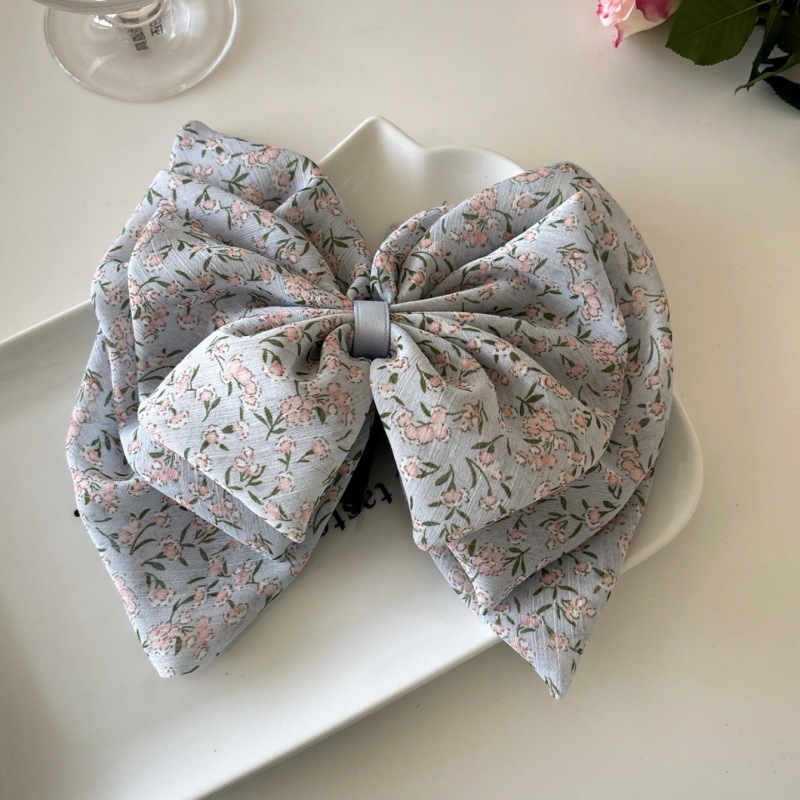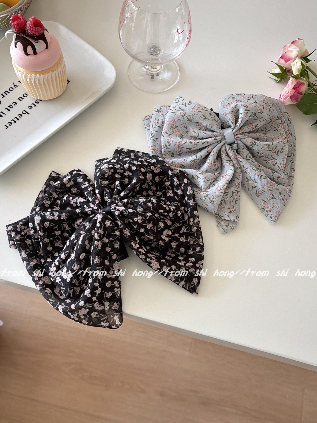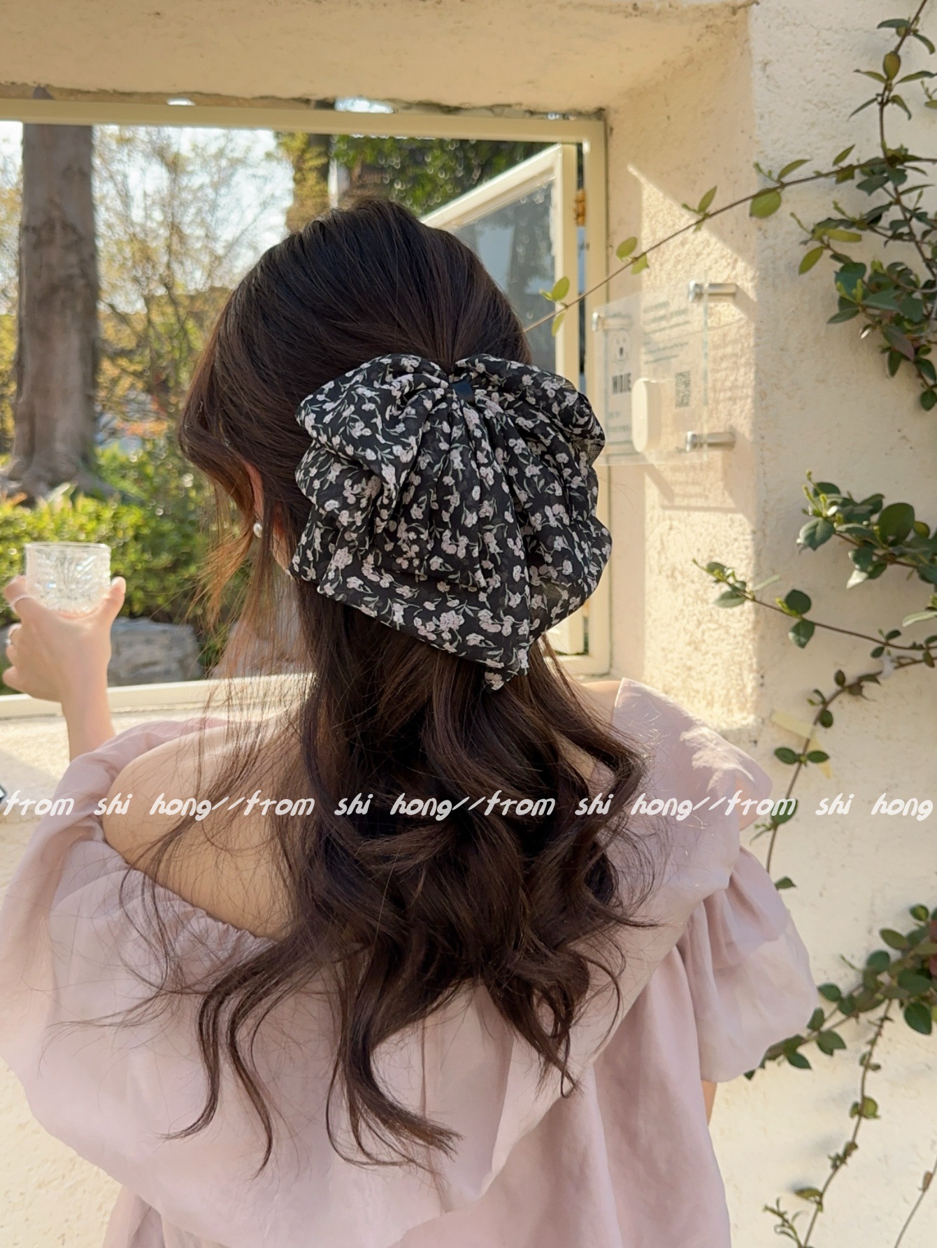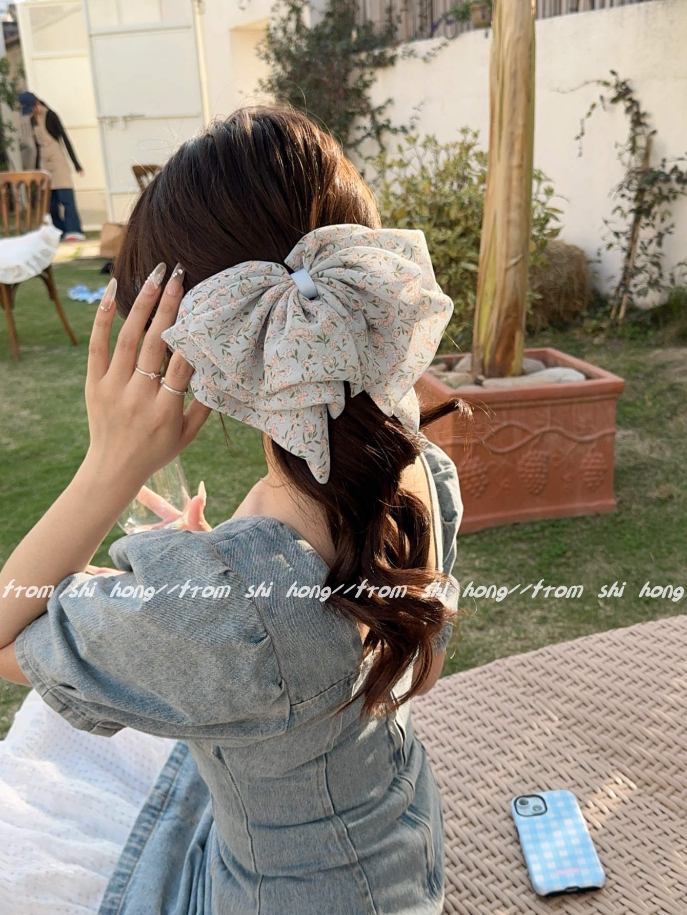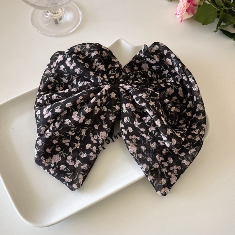게으른 휴일 빈티지 툴레 보우 플로랄 클립 리본 헤어핀 백 헤드 하프 타이 헤어 헤드웨어 헤어핀